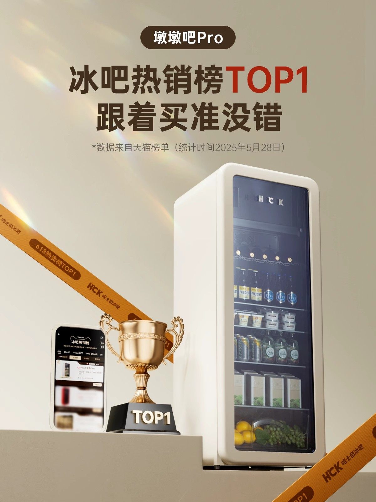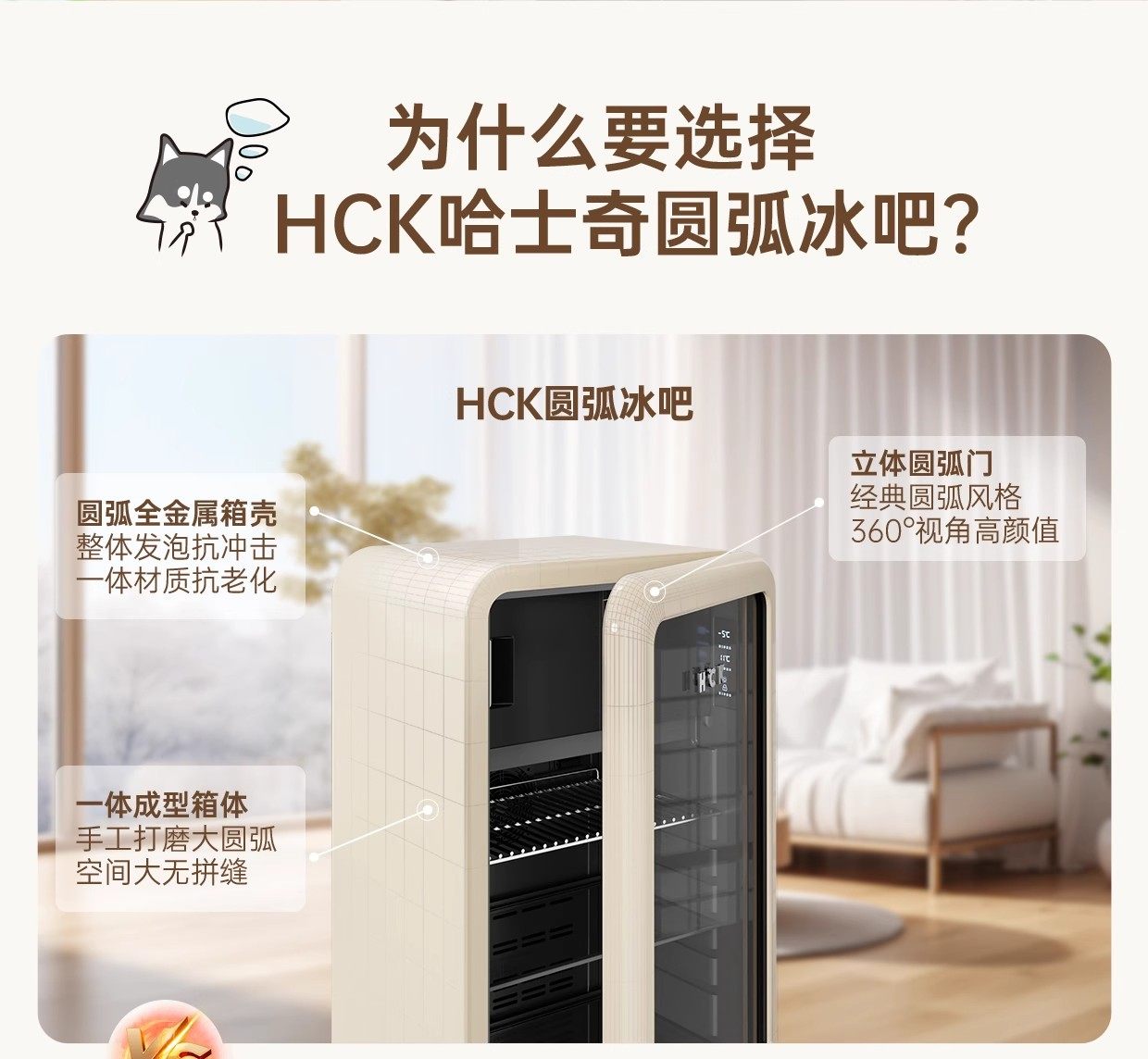 Hck Husky 243L Ice Bar Home Small Transparent Refrigerator Living Room Beverage Cooler Office 4020
