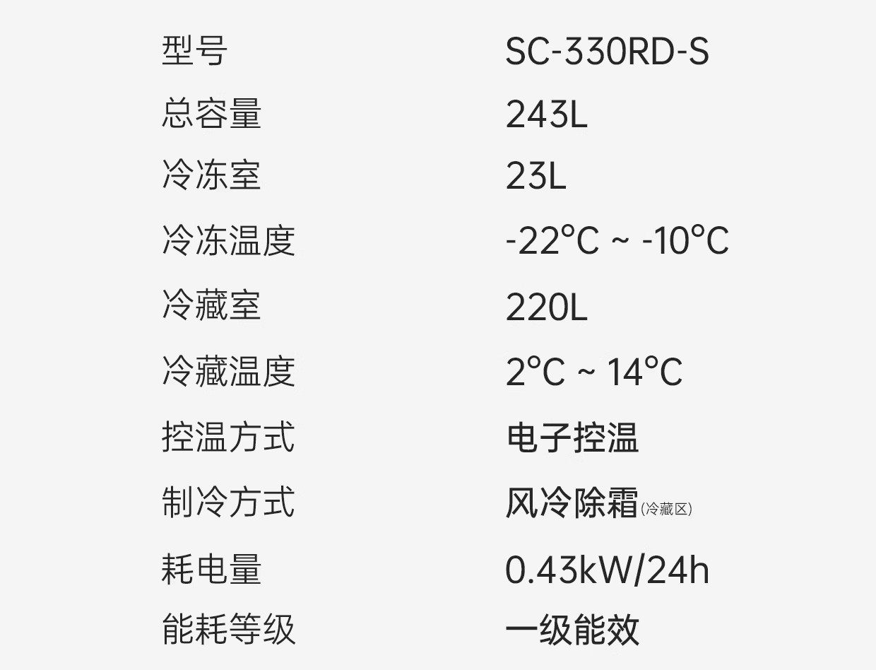 | Color Classification | 243L Milk Tea Color + First-Class Energy Efficiency for Freezing and Refrigeration + Electronic Temperature Control + Air Cooling,243L Warm Grey Gloss + First-Class Energy Efficiency for Freezing and Refrigeration + Electronic Temperature Control + Air Cooling,118L Milk Tea Color + First-Class Energy Efficiency for Freezing and Refrigeration + Electronic Temperature Control,122L Milk Tea Color + Full Refrigeration First-Level Energy Efficiency + Electronic Temperature Control + Air Cooling,130L Milk Tea Color + Full Refrigeration First-Level Energy Efficiency + Electronic Temperature Control,130L Mint Green + Fully Refrigerated First-Level Energy Efficiency + Electronic Temperature Control,136L Slim Bar Milk Tea Color + First-Class Energy Efficiency for Freezing and Refrigeration + Electronic Temperature Control,168L Milk Tea Color + First-Class Energy Efficiency for Freezing and Refrigeration + Electronic Temperature Control + Air Cooling,168L Ivory White + First-Class Energy Efficiency for Freezing and Refrigeration + Electronic Temperature Control + Air Cooling,168L Mint Green + First-Class Energy Efficiency for Freezing and Refrigeration + Electronic Temperature Control + Air Cooling,168L Matte Black + First-Class Energy Efficiency for Freezing and Refrigeration + Electronic Temperature Control + Air Cooling + Wine Cabinet,203L Retro Red + Full Refrigeration, Tier 1 Energy Efficiency + Electronic Temperature Control + Air Cooling + Wine Cabinet,203L Retro Red + Full Refrigeration, Tier 1 Energy Efficiency + Electronic Temperature Control + Air Cooling + Wine Cabinet + Cigar Humidor,203L Starry Sky Black + Full Refrigeration First-Level Energy Efficiency + Electronic Temperature Control + Air Cooling + Wine Cabinet,203L Starry Sky Black + Full Refrigeration First-Level Energy Efficiency + Electronic Temperature Control + Air Cooling + Wine Cabinet + Cigar Cabinet,212L Milk Tea Color + Full Refrigeration First-Level Energy Efficiency + Electronic Temperature Control + Air Cooling,212L Cool Gray Bright + Full Refrigeration First-Level Energy Efficiency + Electronic Temperature Control + Air Cooling |