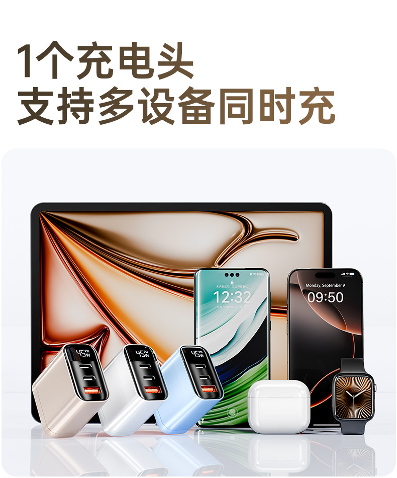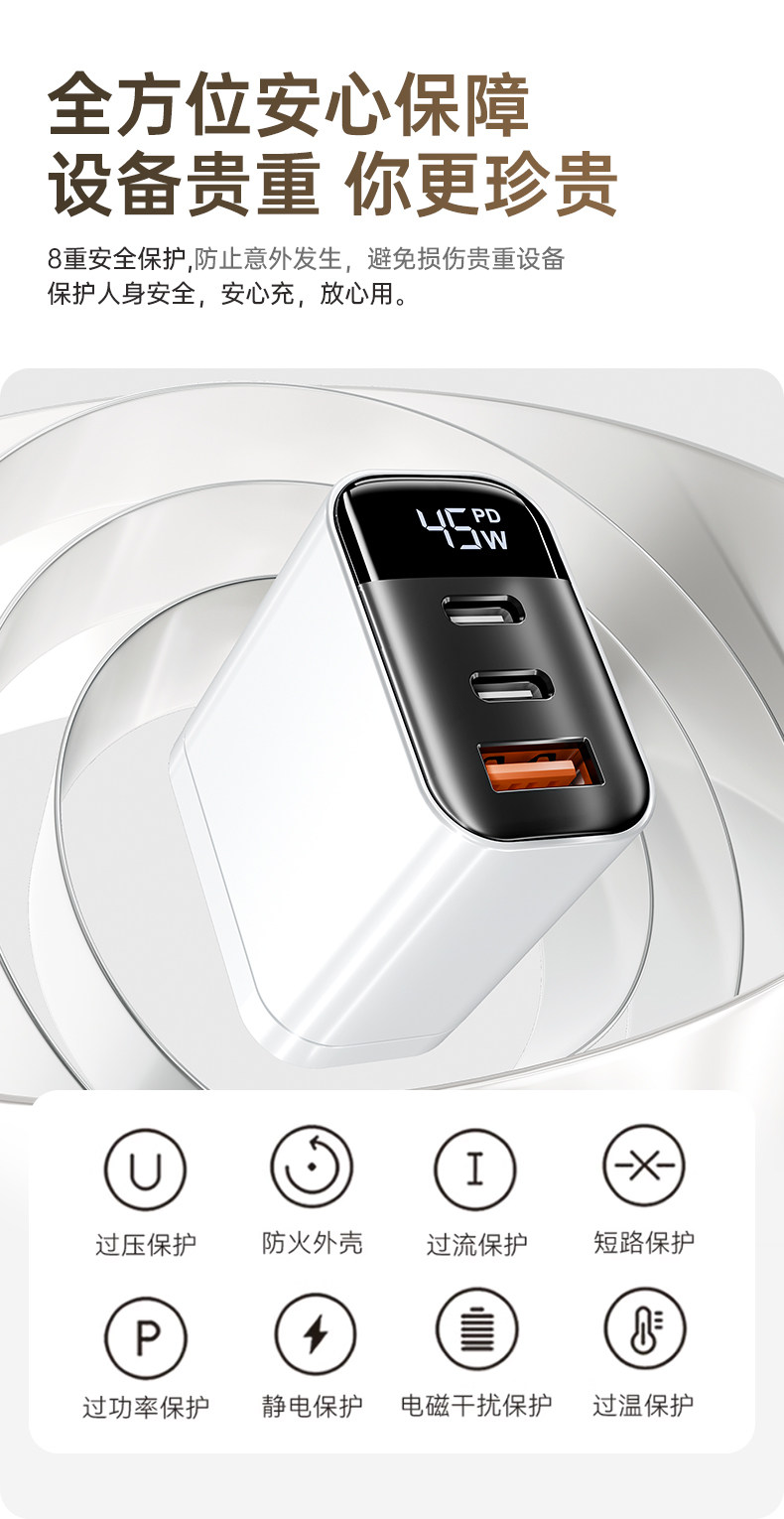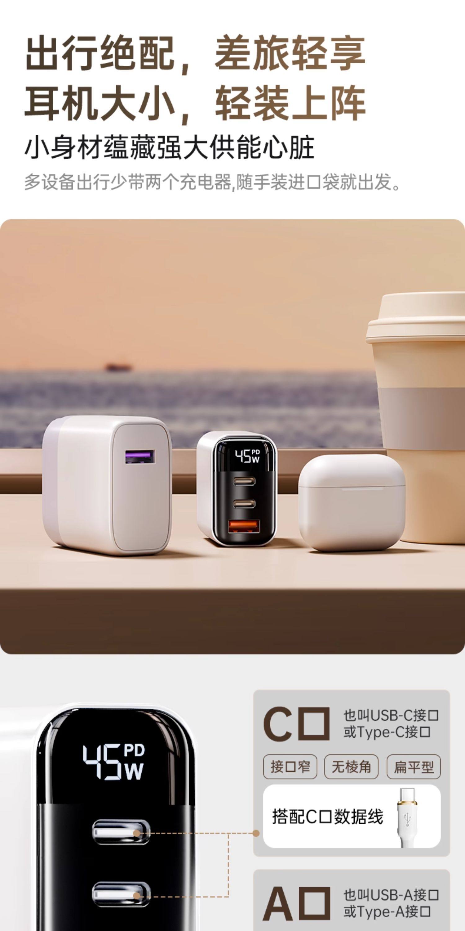 | Color Classification | [National 3C Safety Certification]Safe and Fast Charging Is Guaranteed!,▼The Following Options Are Single Charging Heads,Applicable to iPhone 6 -17,iPad Series Fast Charge,45W three-port super fast charging, mist white, smart digital display丨low temperature fast charging will not damage the machine,45W three-port super fast charging, star silver gray, smart digital display | low temperature fast charging without damaging the machine,45W three-port super fast charging Yuanshan Blue smart digital display丨Low temperature fast charging will not damage the machine,▼The Following Options Are Charging Kits,Applicable to iPhone 6 -17,iPad Series Fast Charge,[Mist White 6-14 Set]45W Three-Port Smart Display Fast Charging Head + 1m Pd Fast Charging Cable,[Star Silver Gray 6-14 Suit]45W Three-Port Smart Display Fast Charging Head + 1m Pd Fast Charging Cable,[Distant Mountain Blue 6-14 Set]45W Three-Port Smart Display Fast Charging Head + 1m Pd Fast Charging Cable,[Mist White 15-17 Set]45W Three-Port Smart Display Fast Charging Head + 1m Double C Fast Charging Cable,[Star Silver Gray 15-17 Suit]45W Three-Port Smart Display Fast Charging Head + 1m Double C Fast Charging Cable,[Distant Mountain Blue 15-17 Set]45W Three-Port Smart Display Fast Charging Head + 1m Double C Fast Charging Cable,[Mist White 6-14 Set]45W Three-Port Smart Display Fast Charging Head +1.5m Pd Fast Charging Cable,[Star Silver Gray 6-14 Suit]45W Three-Port Smart Display Fast Charging Head +1.5m Pd Fast Charging Cable,[Distant Mountain Blue 6-14 Set]45W Three-Port Smart Display Fast Charging Head +1.5m Pd Fast Charging Cable,[Mist White 15-17 Set]45W Three-Port Smart Display Fast Charging Head +1.5m Dual C Fast Charging Cable,[Star Silver Gray 15-17 Suit]45W Three-Port Smart Display Fast Charging Head +1.5m Dual C Fast Charging Cable,[Distant Mountain Blue 15-17 Set]45W Three-Port Smart Display Fast Charging Head +1.5m Dual C Fast Charging Cable,[Mist White 6-14 Set]45W Three-Port Smart Display Fast Charging Head + 2m Pd Fast Charging Cable,[Star Silver Gray 6-14 Suit]45W Three-Port Smart Display Fast Charging Head + 2m Pd Fast Charging Cable,[Distant Mountain Blue 6-14 Set]45W Three-Port Smart Display Fast Charging Head + 2m Pd Fast Charging Cable,[Mist White 15-17 Set]45W Three-Port Smart Display Fast Charging Head + 2m Double C Fast Charging Cable,[Star Silver Gray 15-17 Suit]45W Three-Port Smart Display Fast Charging Head + 2m Double C Fast Charging Cable,[Distant Mountain Blue 15-17 Set]45W Three-Port Smart Display Fast Charging Head + 2m Double C Fast Charging Cable |