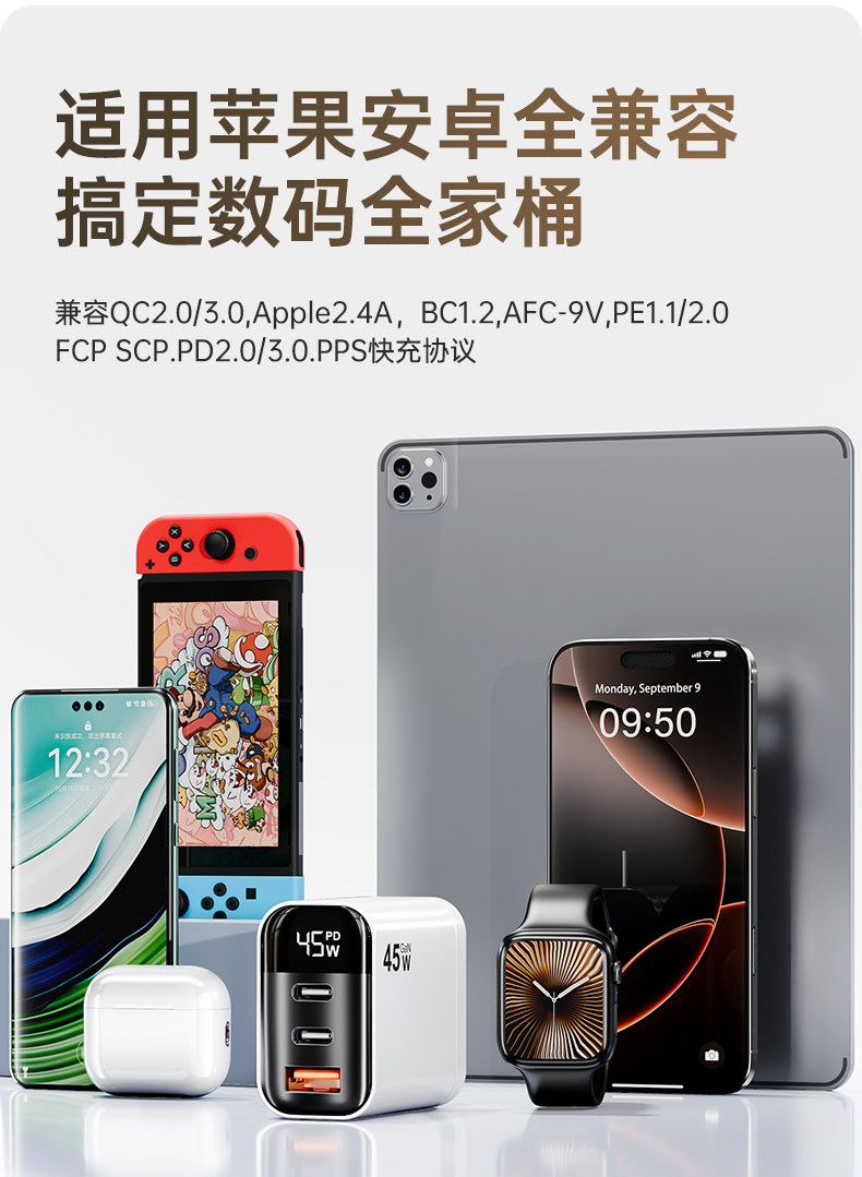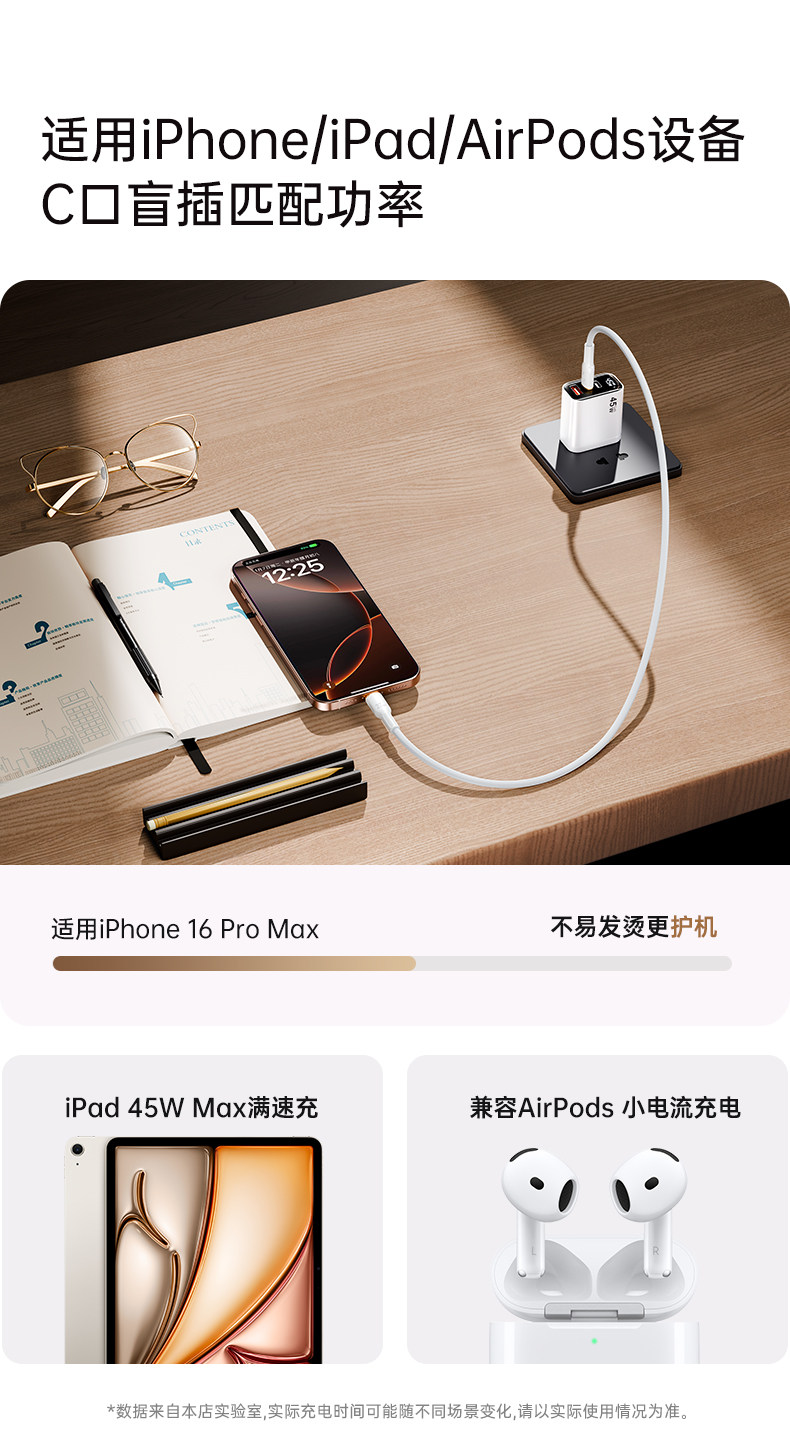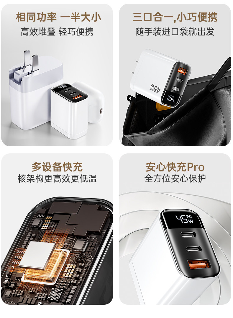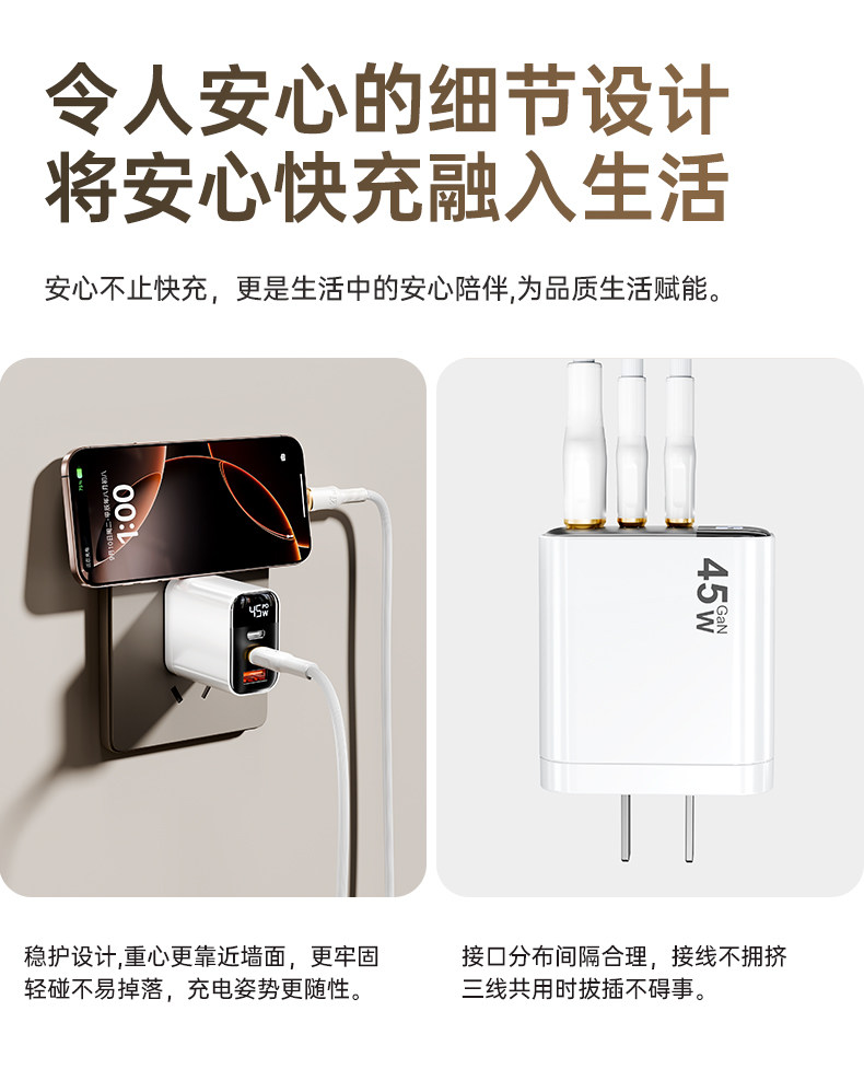 | Color Classification | [National 3C Safety Certification]Safe and Fast Charging Is Guaranteed!,▼The Following Options Are Single Charging Heads,Applicable to iPhone 6 -17,iPad Series Fast Charge,45W three-port super fast charging, mist white, smart digital display丨low temperature fast charging will not damage the machine,45W three-port super fast charging, star silver gray, smart digital display | low temperature fast charging without damaging the machine,45W three-port super fast charging Yuanshan Blue smart digital display丨Low temperature fast charging will not damage the machine,▼The Following Options Are Charging Kits,Applicable to iPhone 6 -17,iPad Series Fast Charge,[Mist White 6-14 Set]45W Three-Port Smart Display Fast Charging Head + 1m Pd Fast Charging Cable,[Star Silver Gray 6-14 Suit]45W Three-Port Smart Display Fast Charging Head + 1m Pd Fast Charging Cable,[Distant Mountain Blue 6-14 Set]45W Three-Port Smart Display Fast Charging Head + 1m Pd Fast Charging Cable,[Mist White 15-17 Set]45W Three-Port Smart Display Fast Charging Head + 1m Double C Fast Charging Cable,[Star Silver Gray 15-17 Suit]45W Three-Port Smart Display Fast Charging Head + 1m Double C Fast Charging Cable,[Distant Mountain Blue 15-17 Set]45W Three-Port Smart Display Fast Charging Head + 1m Double C Fast Charging Cable,[Mist White 6-14 Set]45W Three-Port Smart Display Fast Charging Head +1.5m Pd Fast Charging Cable,[Star Silver Gray 6-14 Suit]45W Three-Port Smart Display Fast Charging Head +1.5m Pd Fast Charging Cable,[Distant Mountain Blue 6-14 Set]45W Three-Port Smart Display Fast Charging Head +1.5m Pd Fast Charging Cable,[Mist White 15-17 Set]45W Three-Port Smart Display Fast Charging Head +1.5m Dual C Fast Charging Cable,[Star Silver Gray 15-17 Suit]45W Three-Port Smart Display Fast Charging Head +1.5m Dual C Fast Charging Cable,[Distant Mountain Blue 15-17 Set]45W Three-Port Smart Display Fast Charging Head +1.5m Dual C Fast Charging Cable,[Mist White 6-14 Set]45W Three-Port Smart Display Fast Charging Head + 2m Pd Fast Charging Cable,[Star Silver Gray 6-14 Suit]45W Three-Port Smart Display Fast Charging Head + 2m Pd Fast Charging Cable,[Distant Mountain Blue 6-14 Set]45W Three-Port Smart Display Fast Charging Head + 2m Pd Fast Charging Cable,[Mist White 15-17 Set]45W Three-Port Smart Display Fast Charging Head + 2m Double C Fast Charging Cable,[Star Silver Gray 15-17 Suit]45W Three-Port Smart Display Fast Charging Head + 2m Double C Fast Charging Cable,[Distant Mountain Blue 15-17 Set]45W Three-Port Smart Display Fast Charging Head + 2m Double C Fast Charging Cable |