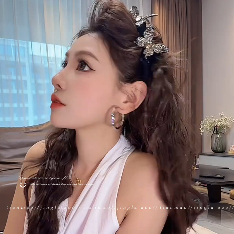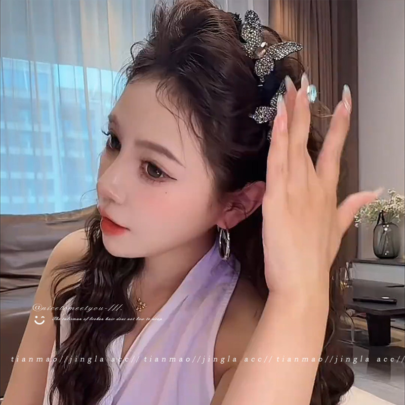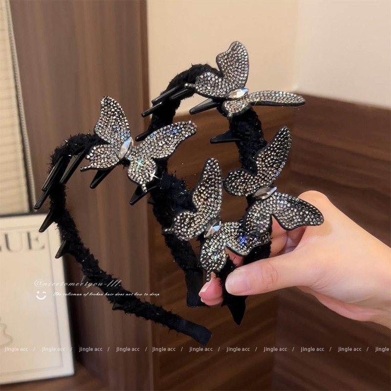 Light Luxury Rhinestone Butterfly Headband for Women 2025 New Style High-End Toothed High Cranial Headband for Washing Face and Holding Hair Accessories