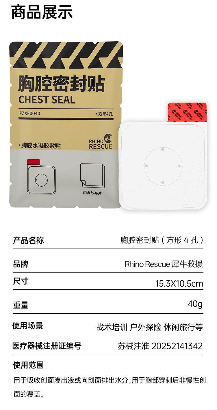 Rhino Rescue Chest Seal Wound Dressing Chest Seal Patch Hiking Tactical Training Equipment