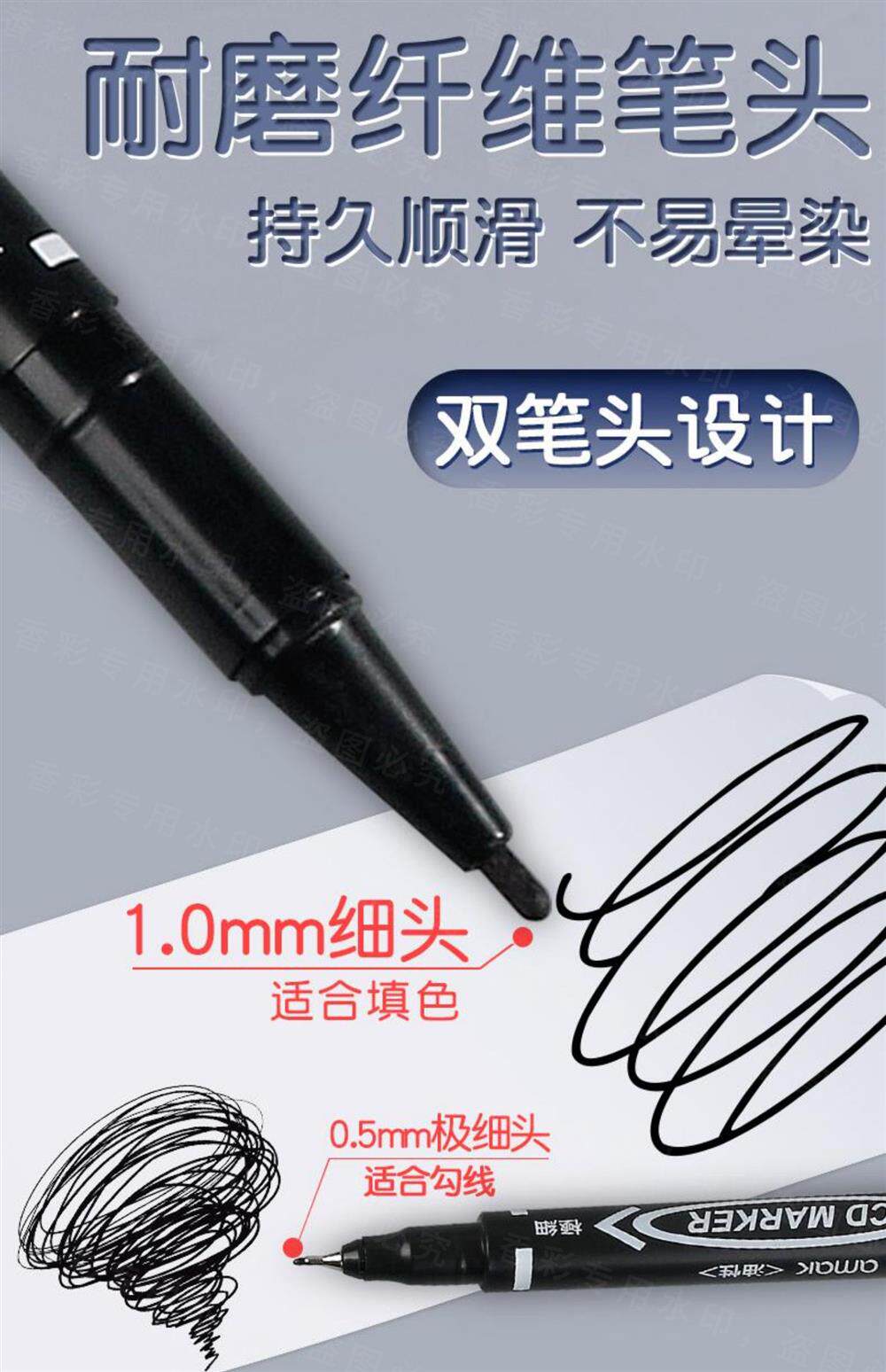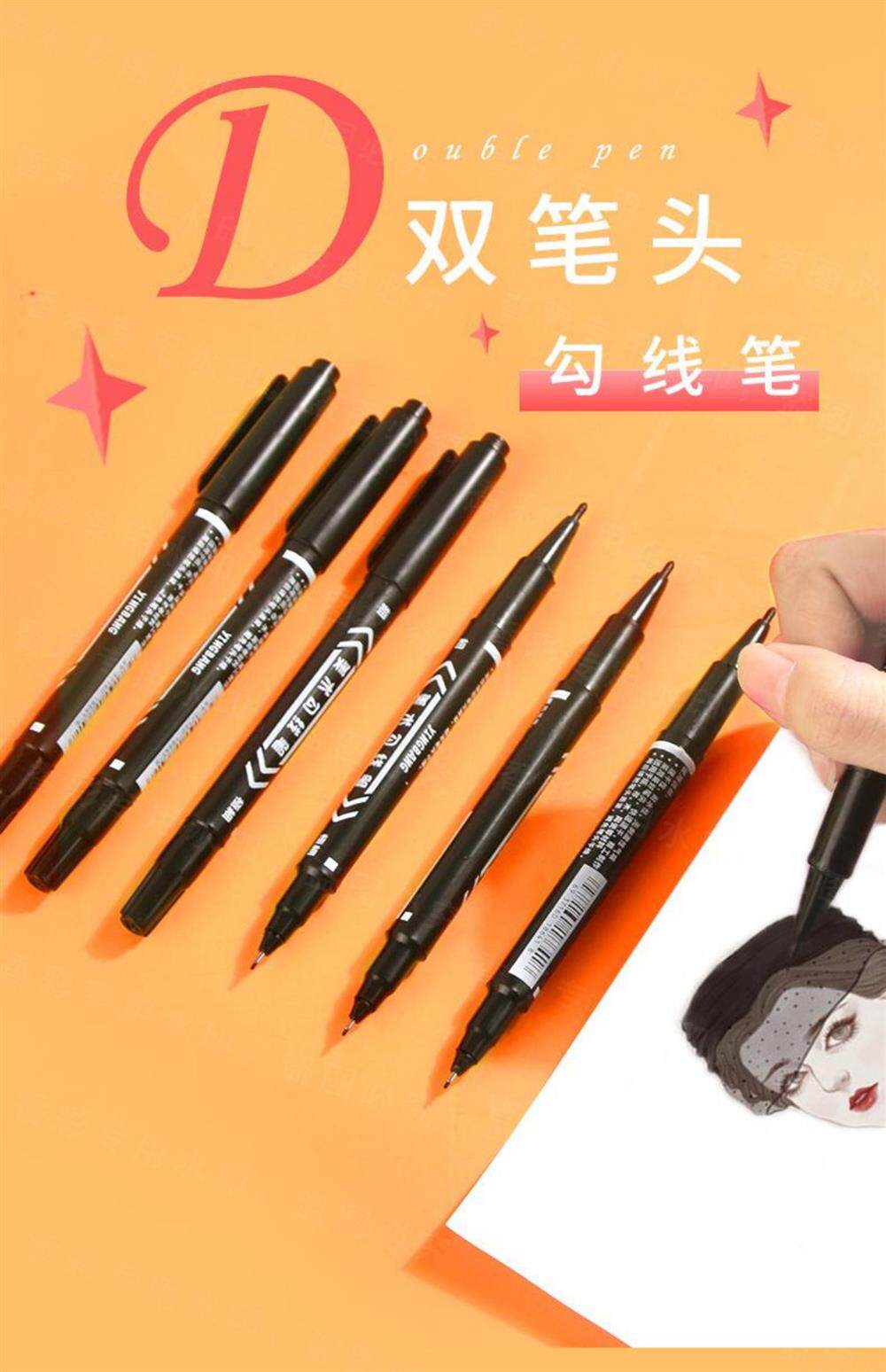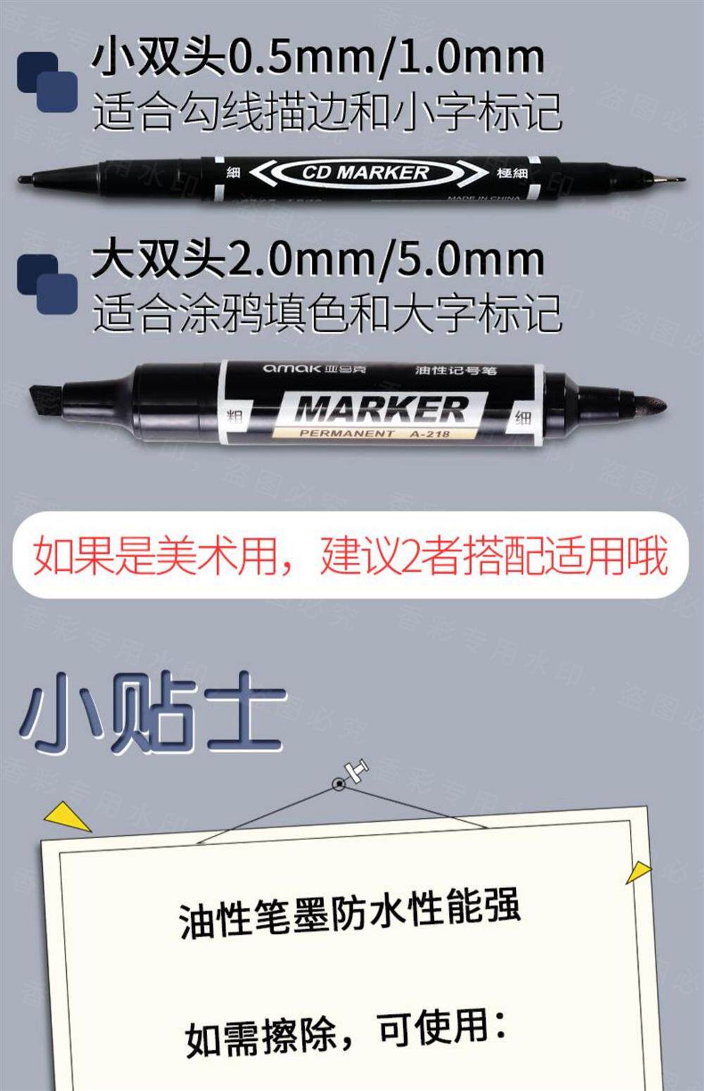Water-Based and Oil-Based Black Marker, Waterproof and Oil-Proof, Non-Fading, Quick-Drying, Small Dual-Tip, Thick and Thin Tips, Special for Construction Sites, Blue and Red, Special for Art, Children's Drawing, Elementary School Students' Outlining Pen