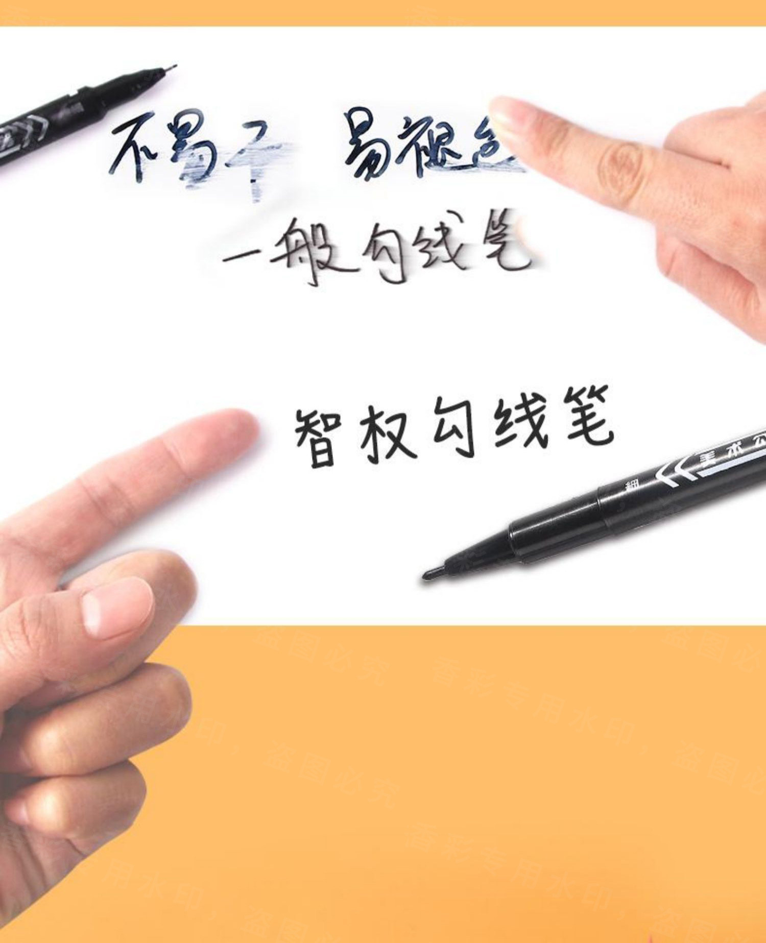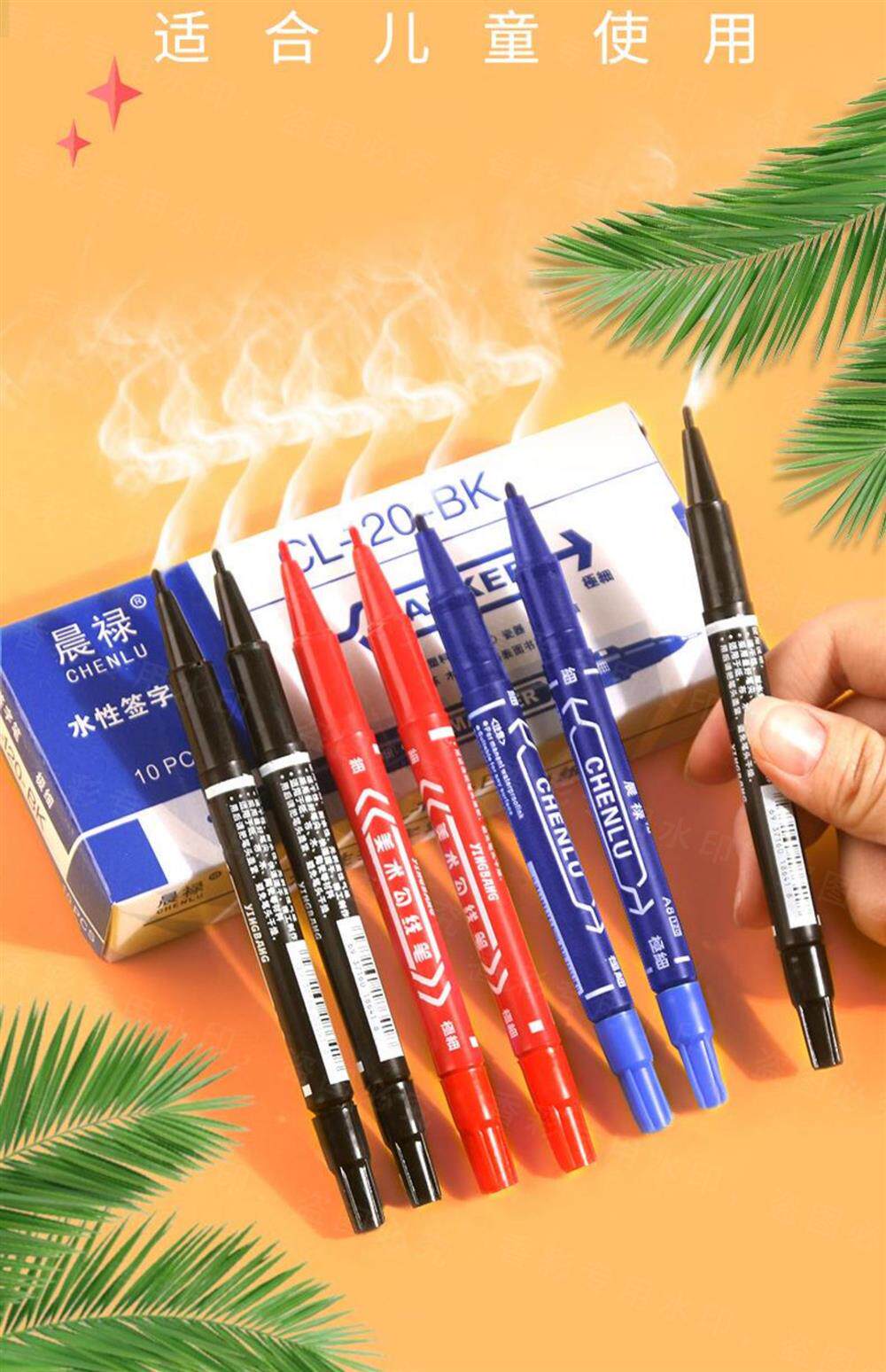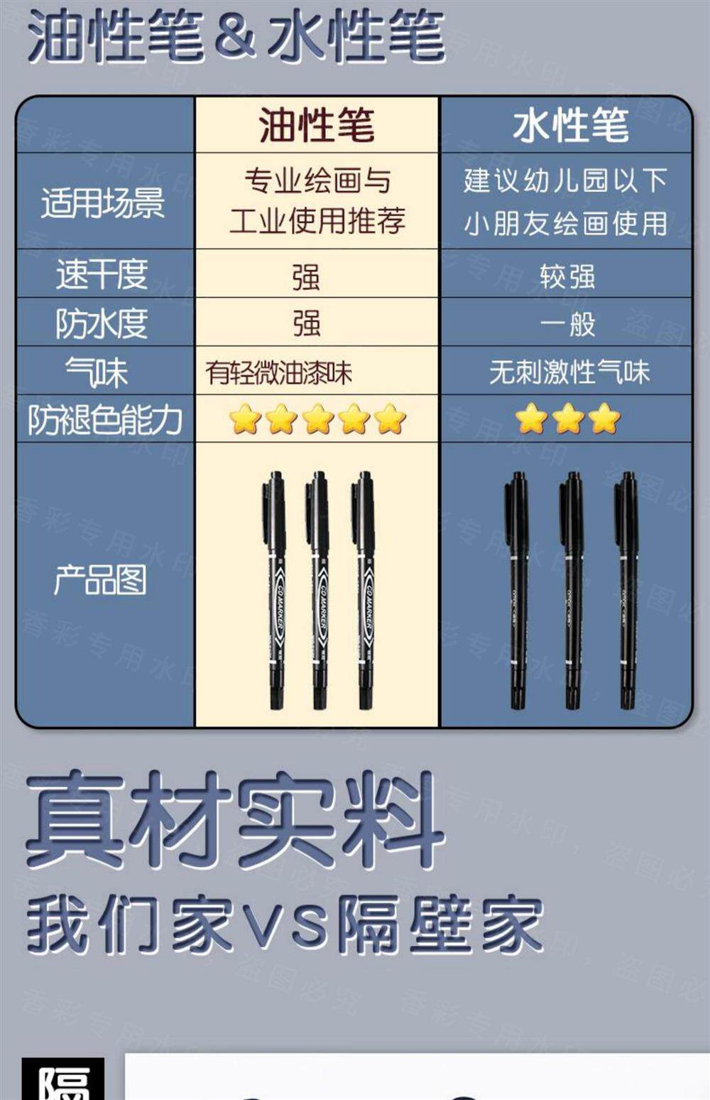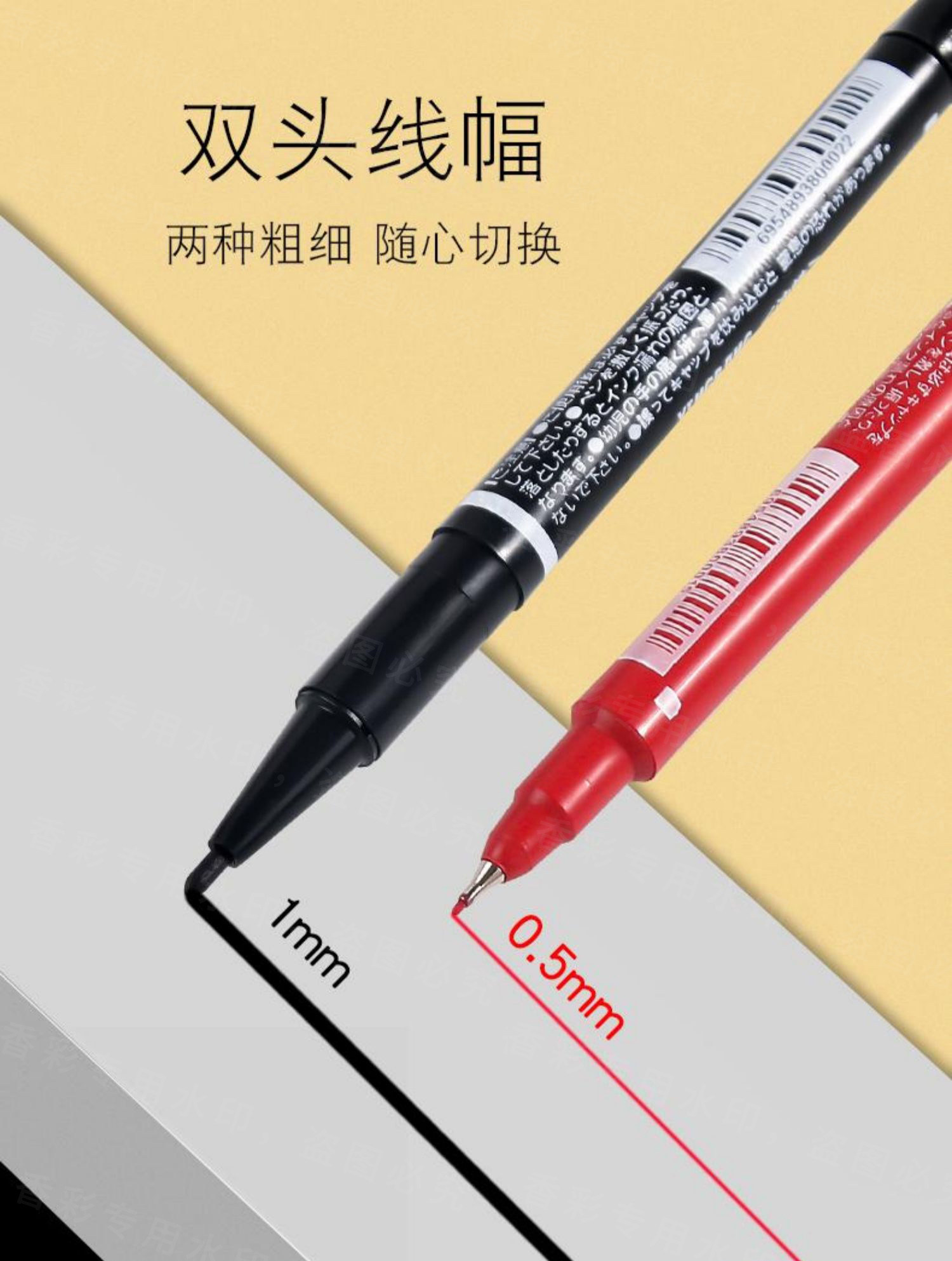 Water-Based and Oil-Based Black Marker, Waterproof and Oil-Proof, Non-Fading, Quick-Drying, Small Dual-Tip, Thick and Thin Tips, Special for Construction Sites, Blue and Red, Special for Art, Children's Drawing, Elementary School Students' Outlining Pen