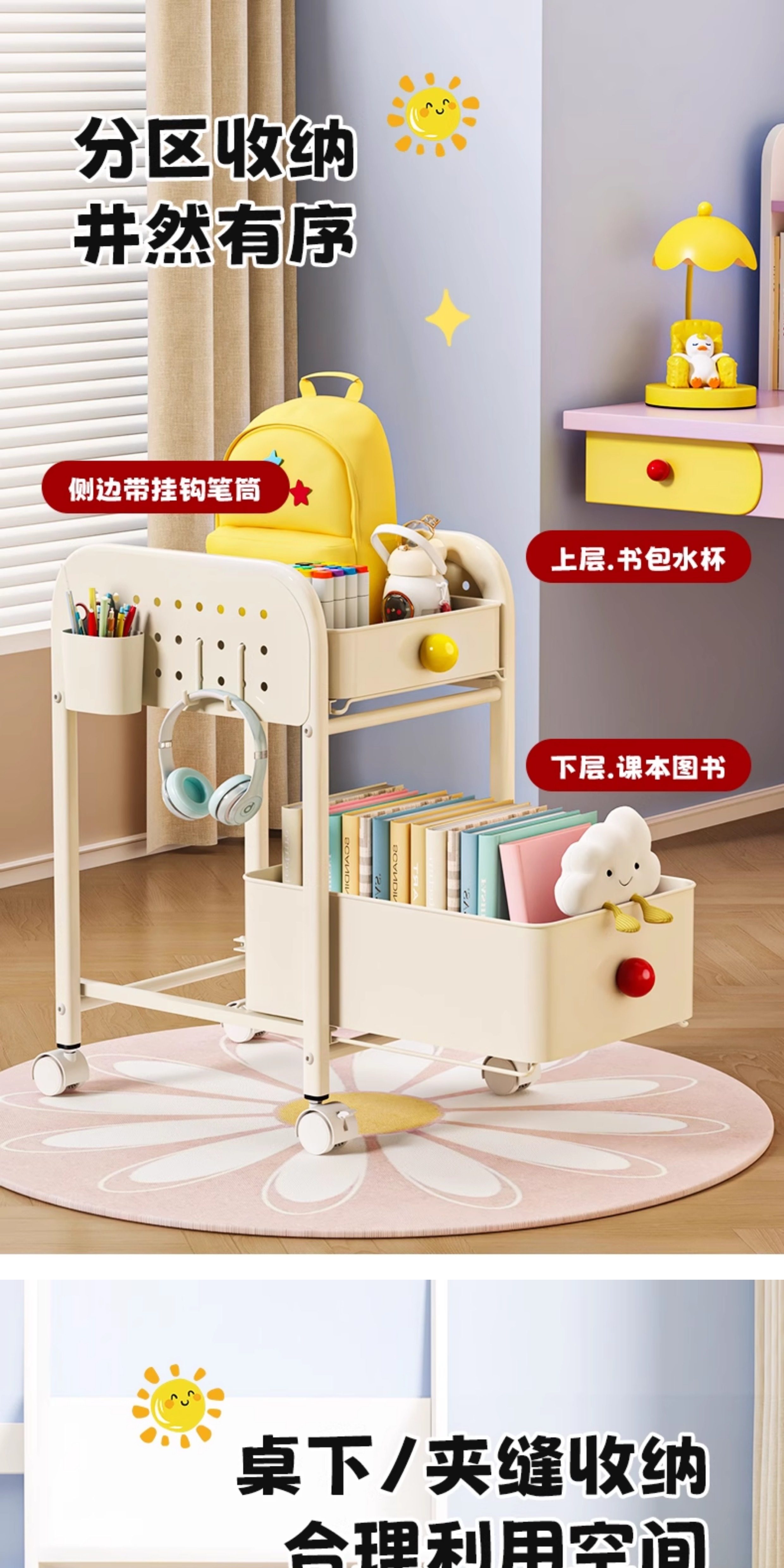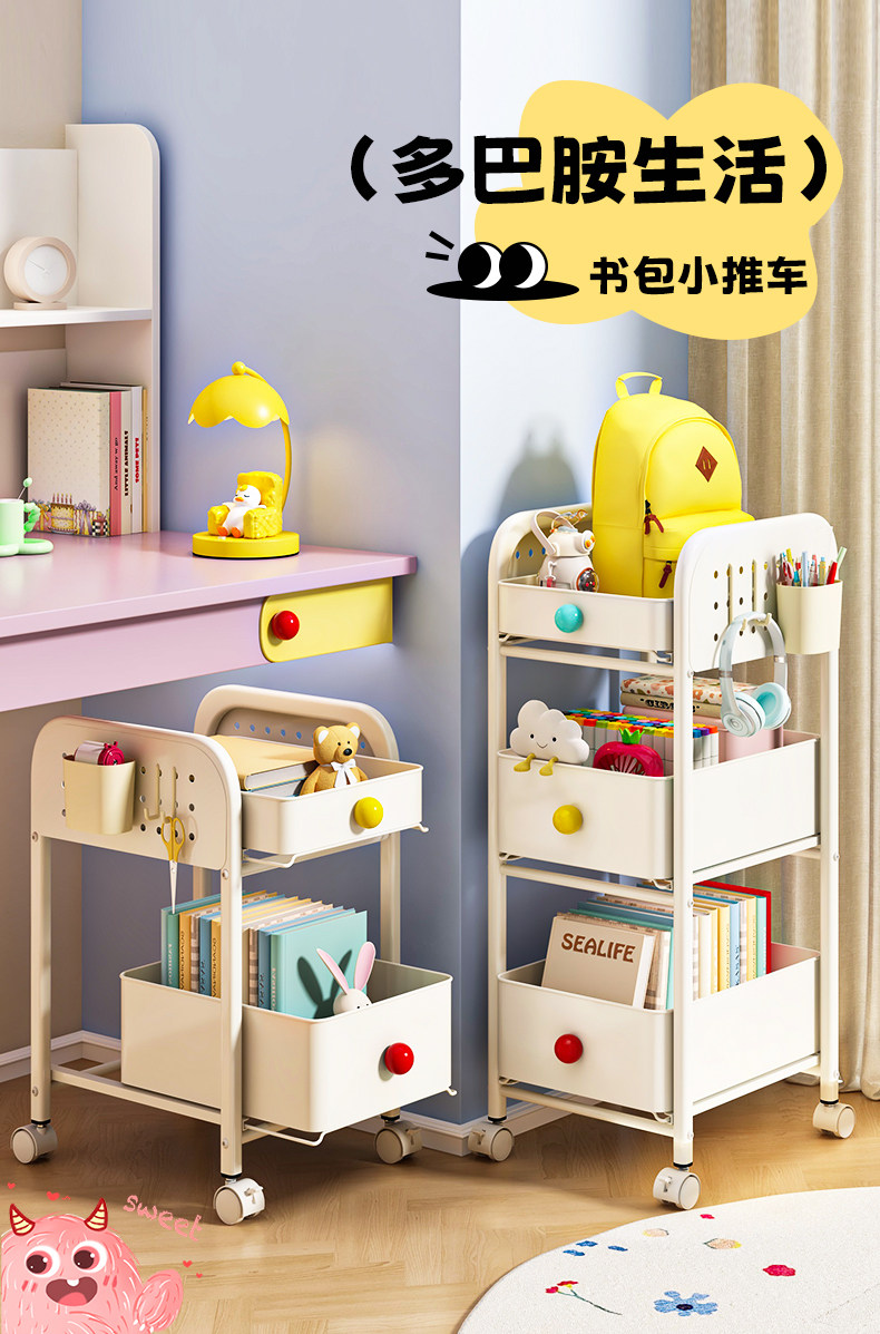 Dopamine Bookshelf Storage Rack under Study Desk, Small Cart for Storing Books, Multi-Layer Floor-Standing Storage Rack for Home Use