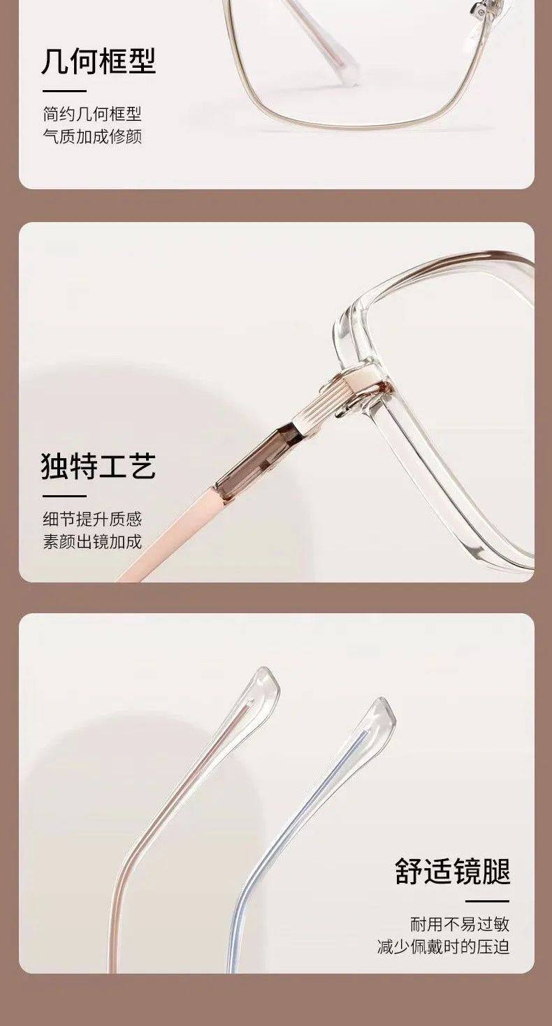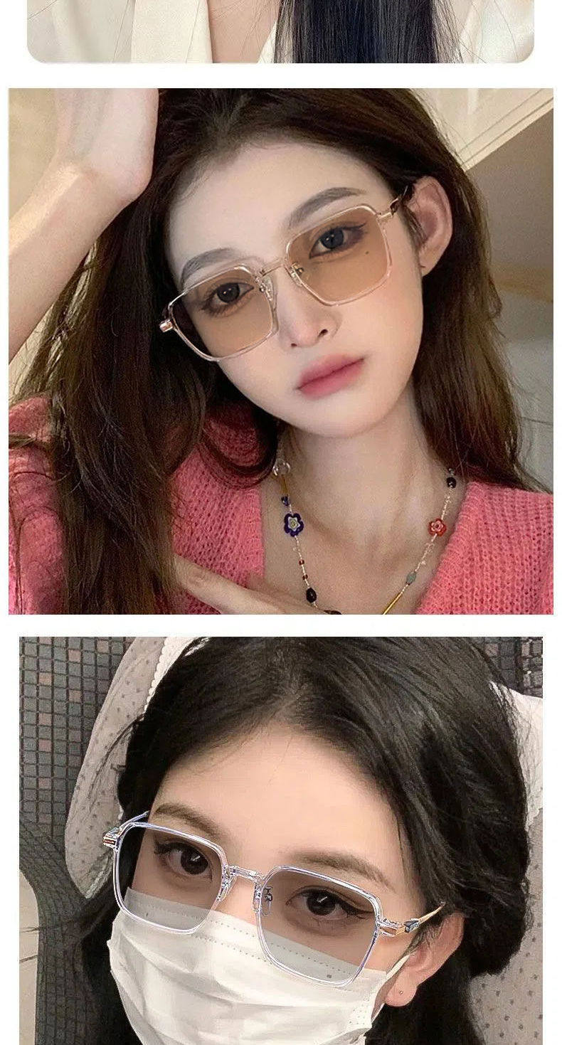 Color-Changing Myopia Glasses for Women, Ultra-Light, Trendy, Cool Tea-Colored Transparent Frame, High-Value, Large Frame, Slimming, Natural Look, Non-Prescription Glasses
