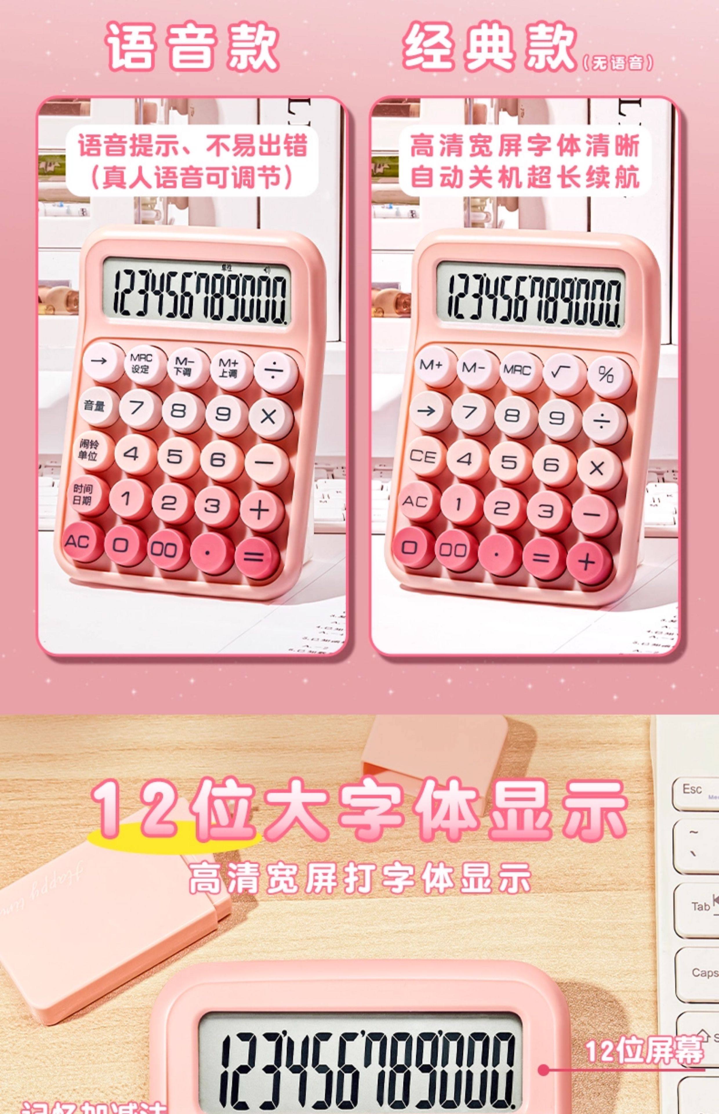 New Calculator with High Aesthetic Appeal, Mechanical Keyboard, Silent and Portable for Students, Large Keys, Suitable for Office Use, Voice Function, 12-Digit Display, Smart Large-Screen Computing Device