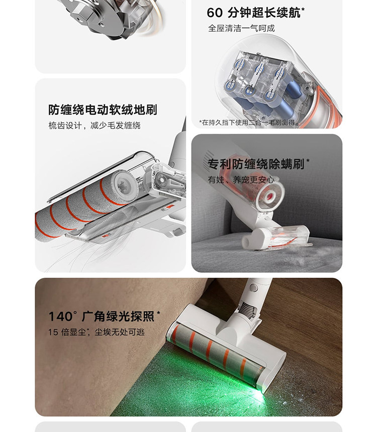 Mijia Wireless Vacuum Cleaner 3C Household Handheld High Suction Long Battery Life Anti-Tangle Mopping Green Light Dust Detection Version