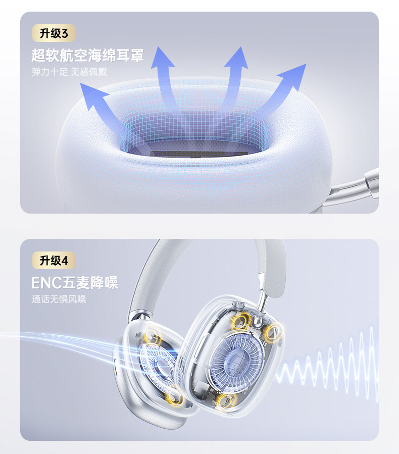 Jinyun B6Pro Over-Ear Headphones Bluetooth Active Noise-Cancelling Headset Computer Wireless Gaming Earphones Suitable for Apple