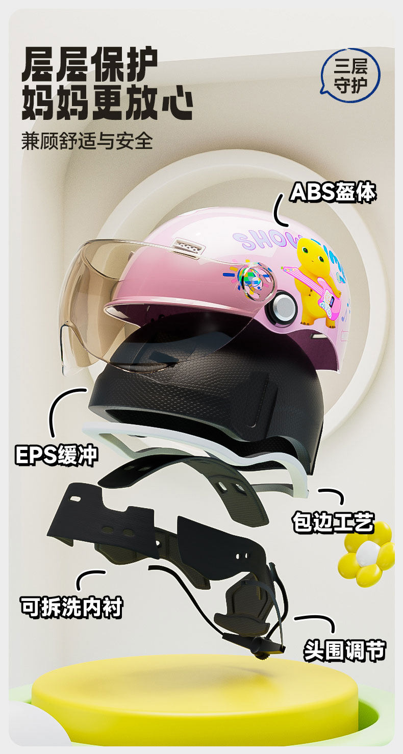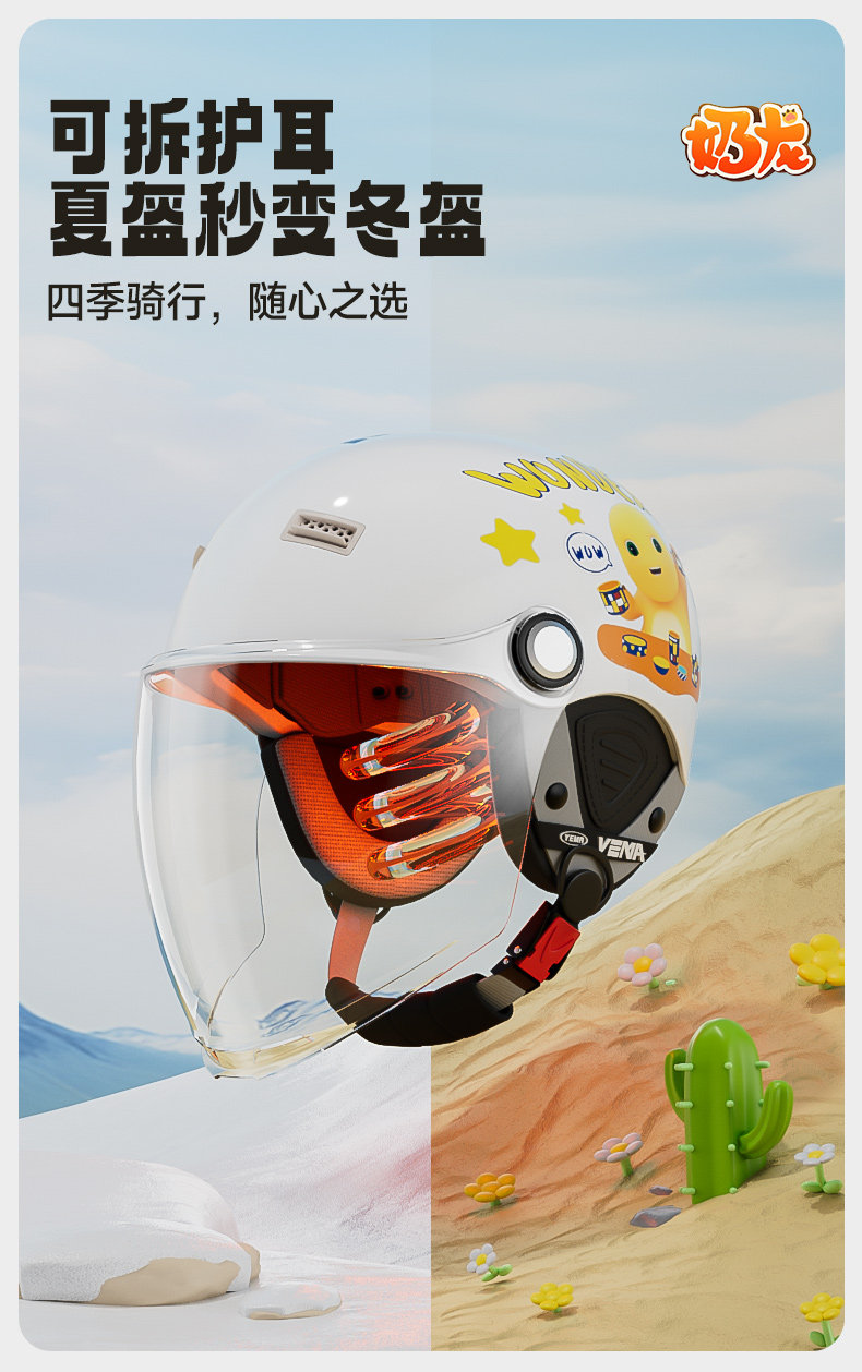 Mustang Helmet Official Flagship Store Children's Winter All-Season 3C Certified Electric Motorcycle Safety Helmet for Boys and Girls