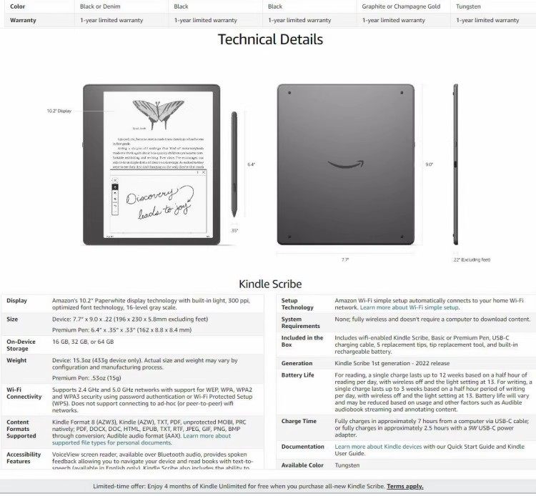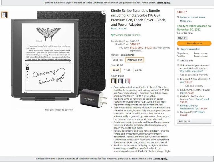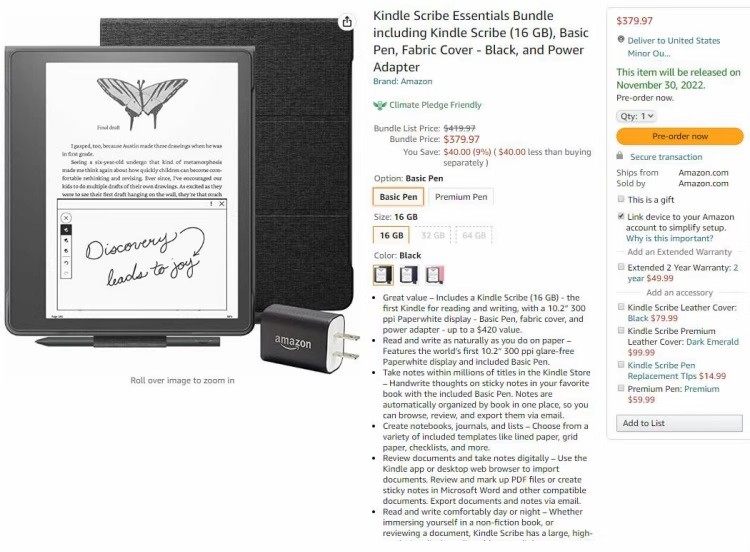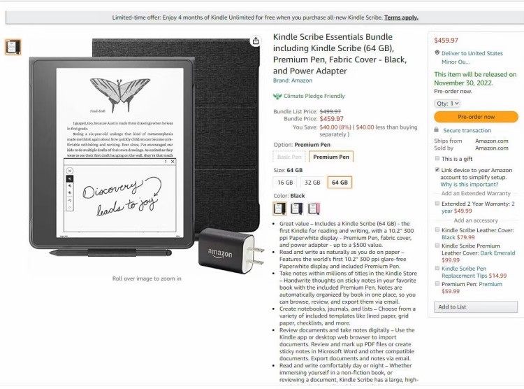 Amazon Kindle Scribe E-Book 10.2inch Inch Screen 64g Stylus Original Genuine New Model Comes with a Case