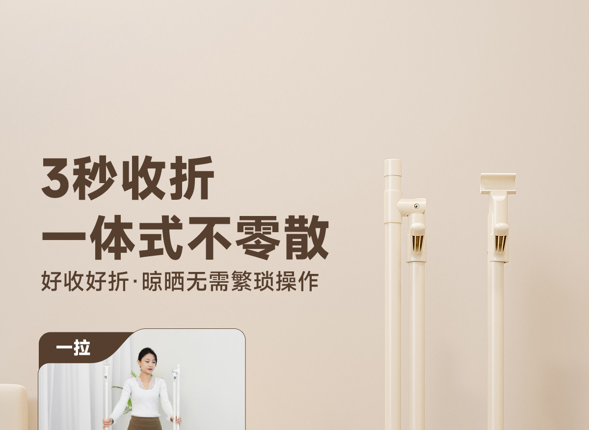 Taily Indoor Foldable Clothes Drying Rack, Bedroom Floor-Standing Clothes Drying Rod, Extendable Quilt Drying Tool, Small Apartment Bay Window