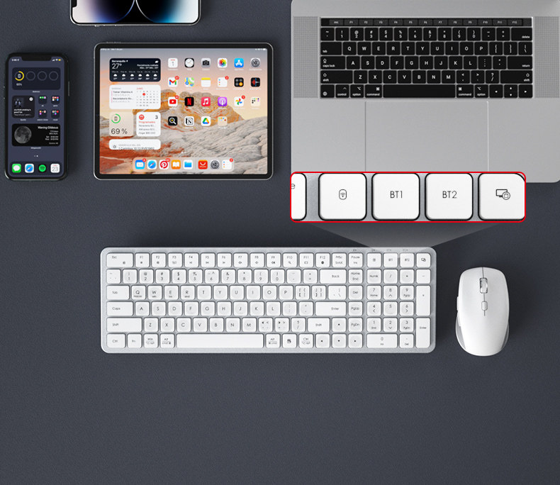 Bow Premium Wireless Bluetooth Dual-Mode Keyboard and Mouse Set for Mobile Phones, Tablets, Office Use, Silent and Portable