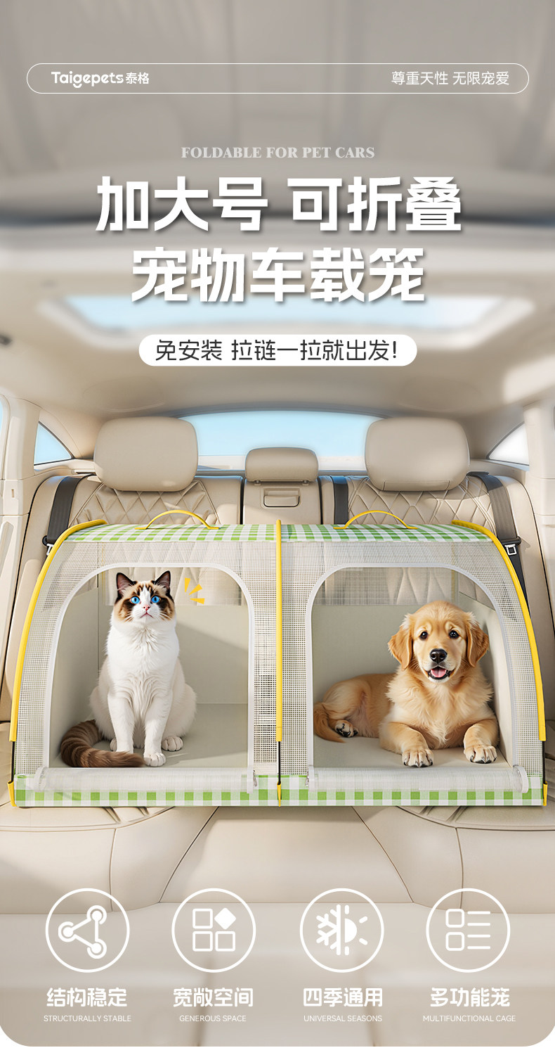 Car-Mounted Dog and Cat Kennel, Foldable and Portable, Suitable for All Seasons, Pet Cage for Cats and Dogs, a Great Tool for Dogs to Travel in the Car