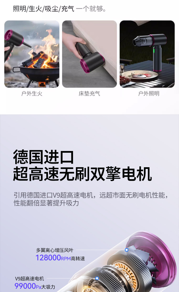 | Color Classification | ✅[Add to Favorites and Cart]Enjoy ★90 Days Free Trial★Trade in,✅[Battery Testing and Certification]UN38.3 Authoritative Lithium Battery Certifications, Safe and Reliable,Bright Titanium Silver[Upgraded Model]Frequency Converter Motor/Suction, Blowing, Pumping and Dust Display 5-in-1,Bright Titanium Silver[Flagship Model]Frequency Converter Motor/Suction, Blowing, Pumping and Dust Display 5-In-1/Air Bag/Filter Element*2,Bright Titanium Silver[Luxury Model]Frequency Converter Motor/Suction, Blowing, Pumping and Dust Display 5-In-1/Air Bag/Filter Element*4,Space Gray[Upgraded Model]Frequency Converter Motor/Suction, Blowing, Pumping and Dust Display 5-in-1,Space Gray[Flagship Model]Frequency Converter Motor/Suction, Blowing, Pumping and Dust Display 5-In-1/Air Bag/Filter Element*2,Space Gray[Luxury Model]Frequency Converter Motor/Suction, Blowing, Pumping and Dust Display 5-In-1/Air Bag/Filter Element*4,↓The Following Is the Brushless 3-Speed Super Suction Green Light Dust Display Model. Enjoy Free Filter Elements Every Month,Bright Titanium Silver[The Ultimate Style]Brushless Motor / True 3-Speed 89000 Rpm High Suction Power / 5-in-1 Suction, Blow, Vacuum, Charge, and Dust Display / Includes Flight Case,Bright Titanium Silver[Supreme Edition]Brushless Motor / True 3-Speed 99000 Pa Powerful Suction / 5-in-1 Vacuum, Blow, Suction, Charge, and Dust Display / Includes Flight Case,Space Gray[The Ultimate Style]Brushless Motor / True 3-Speed 89000 Rpm High Suction Power / 5-in-1 Suction, Blow, Vacuum, Charge, and Dust Display / Includes Flight Case,Space Gray[Supreme Edition]Brushless Motor / True 3-Speed 99000 Pa Powerful Suction / 5-in-1 Vacuum, Blow, Suction, Charge, and Dust Display / Includes Flight Case,↓The Following Is an Upgraded Model with Obvious Dust Depth Cleaning and Double Improvement in Suction Power and Battery Life,Bright Titanium Silver[The Ultimate Style]German Brushless Motor / True 3-Speed 89000 Rpm High Suction Power / 5-in-1 Suction, Blow, Vacuum, Charge, and Dust Display / Includes Flight Case,Bright Titanium Silver[Supreme Edition]German Brushless Motor / True 3-Speed 99000 Pa Suction Power / 5-in-1 Vacuum, Blow, Suction, Charge, and Dust Display / Includes Flight Case,Space Gray[The Ultimate Style]German Brushless Motor / True 3-Speed 89000 Rpm High Suction Power / 5-in-1 Suction, Blow, Vacuum, Charge, and Dust Display / Includes Flight Case,Space Gray[Supreme Edition]German Brushless Motor / True 3-Speed 99000 Pa Suction Power / 5-in-1 Vacuum, Blow, Suction, Charge, and Dust Display / Includes Flight Case,✅[True Brushless Motor]Stronger Suction★Longer Lifespan★Less Energy Consumption,✅[Quality Assurance]Authoritative Certification★Quality Inspection★Beware of Falsely Advertised Products,Green Light Shows Dust[Premium Edition - Bright Titanium Silver]Frequency Conversion Motor/Suction, Blowing, Pumping and Dust Display 5-In-1/Hepa Filter Element*3,Green Light Shows Dust[Premium Edition - Space Gray]Frequency Conversion Motor/Suction, Blowing, Pumping and Dust Display 5-In-1/Hepa Filter Element*3 |