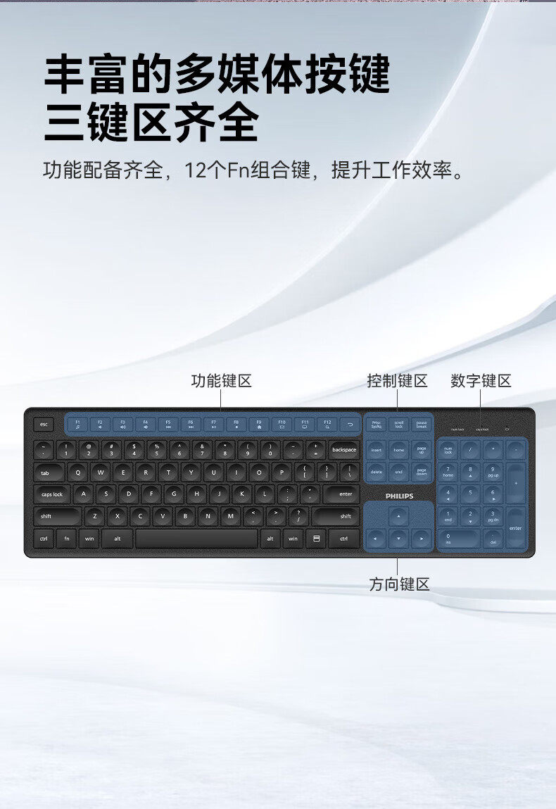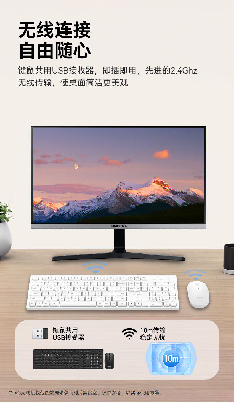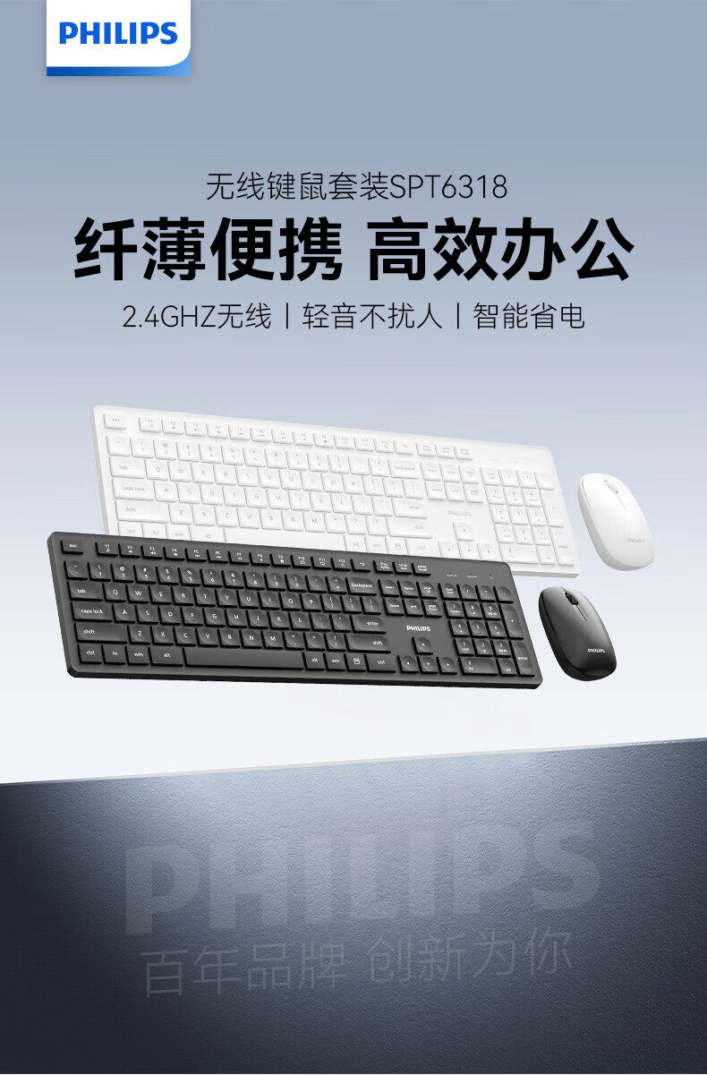Philips Wireless Keyboard and Mouse Set, Quiet, Small, Thin, Keyboard and Mouse for Laptops and Desktop Computers, Portable and Universal