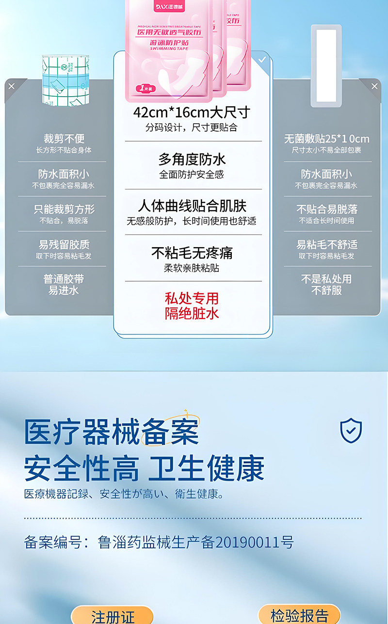 Medical-Grade Swimming Protective Patch, Private Area Waterproof Patch, Anti-Infection Personal Care Patch, Menstrual Period Patch for Women and Children, Fully Enclosed Type