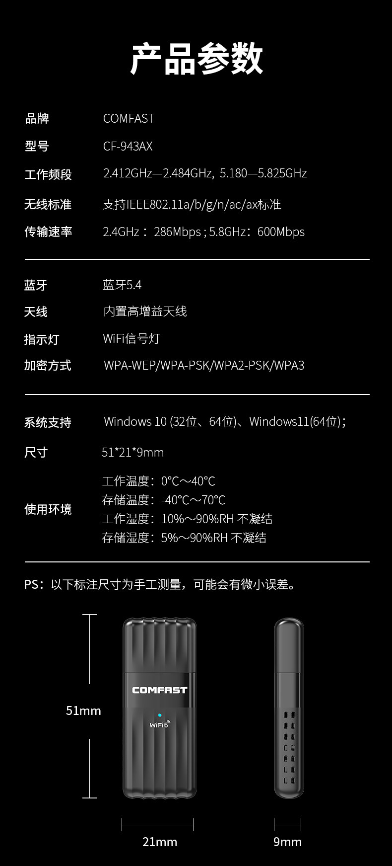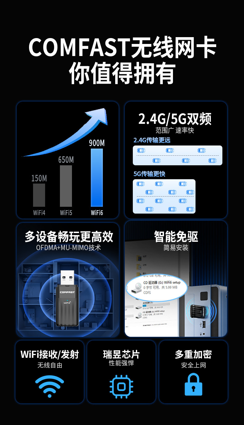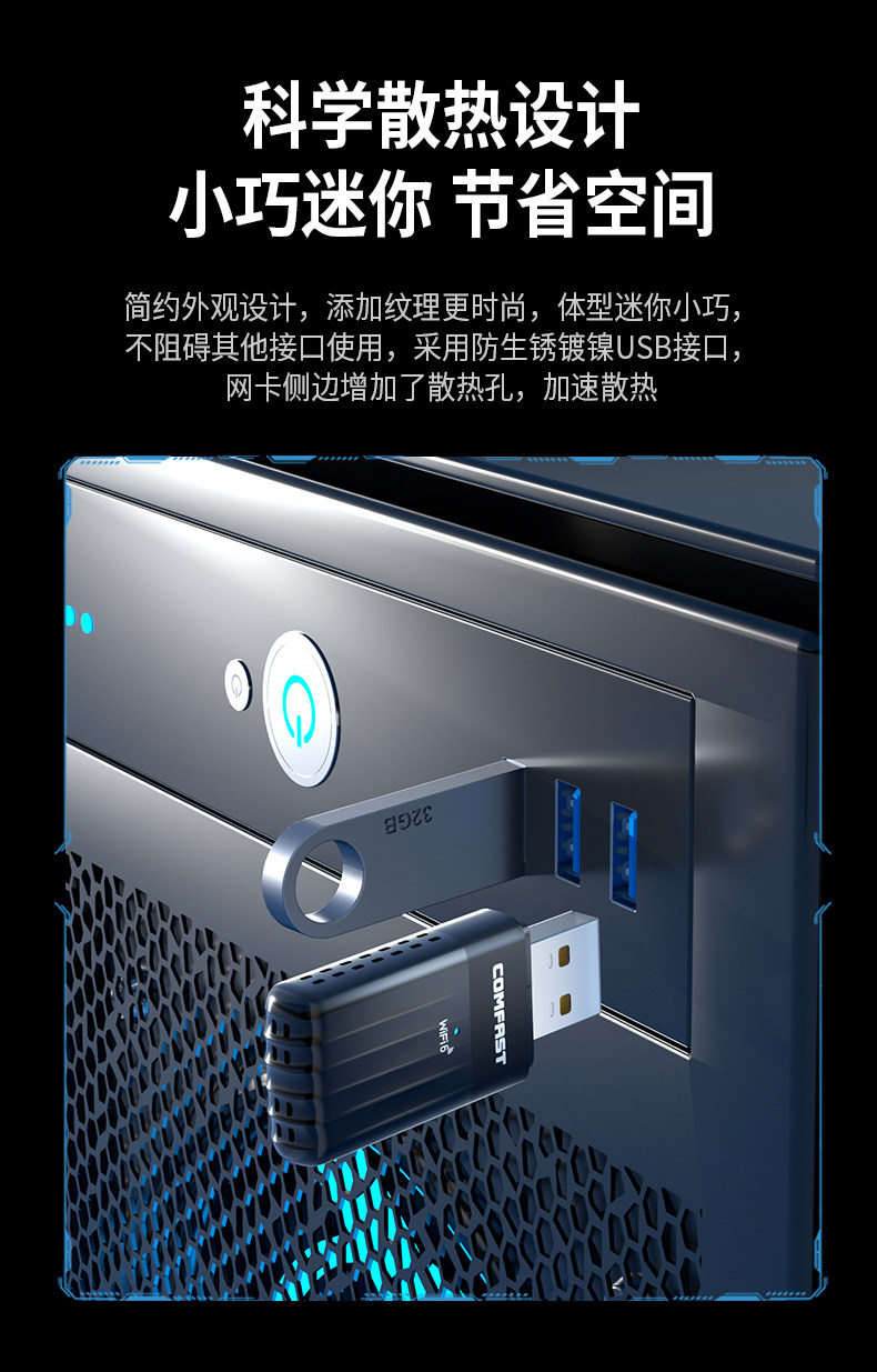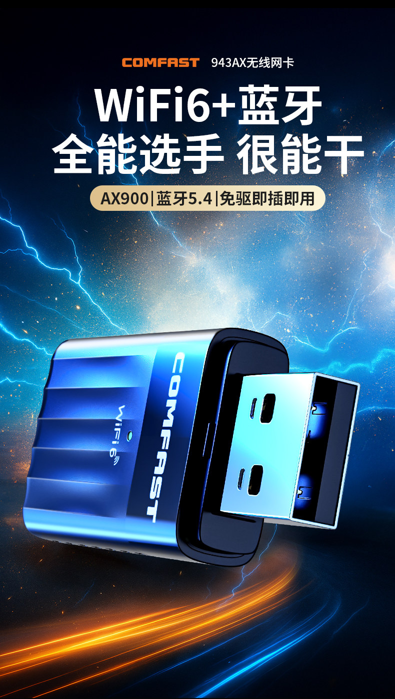 Comfast Driver-Free Wifi6 Wireless Network Card Desktop Computer Wifi Receiver Bluetooth Two-In-One 5g Dual-Band Gigabit Stable Through-Wall Desktop Notebook Receiver Transmitter 943Ax