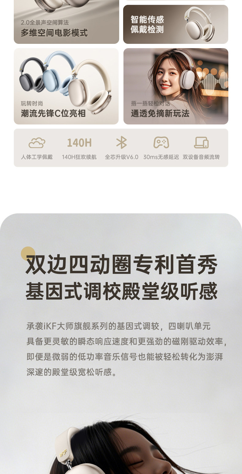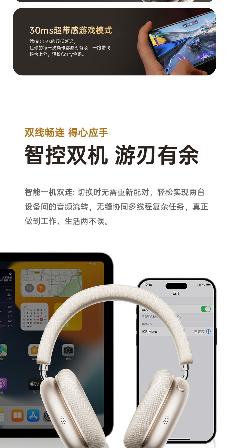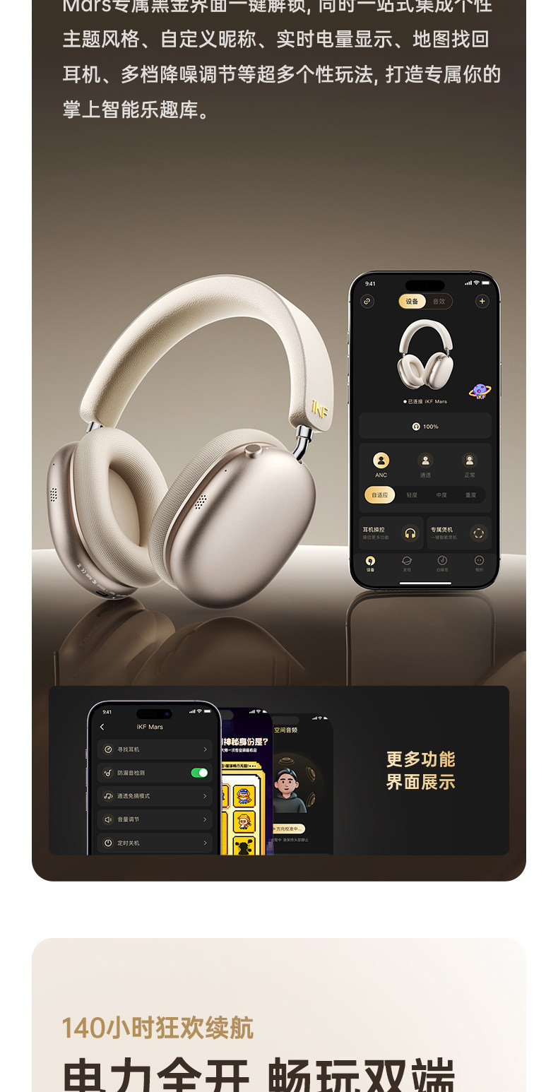 Ikf Mars Head-Mounted Bluetooth Headset Wireless Adaptive Noise Reduction Head Tracking Ldac Decoding 2025 Model