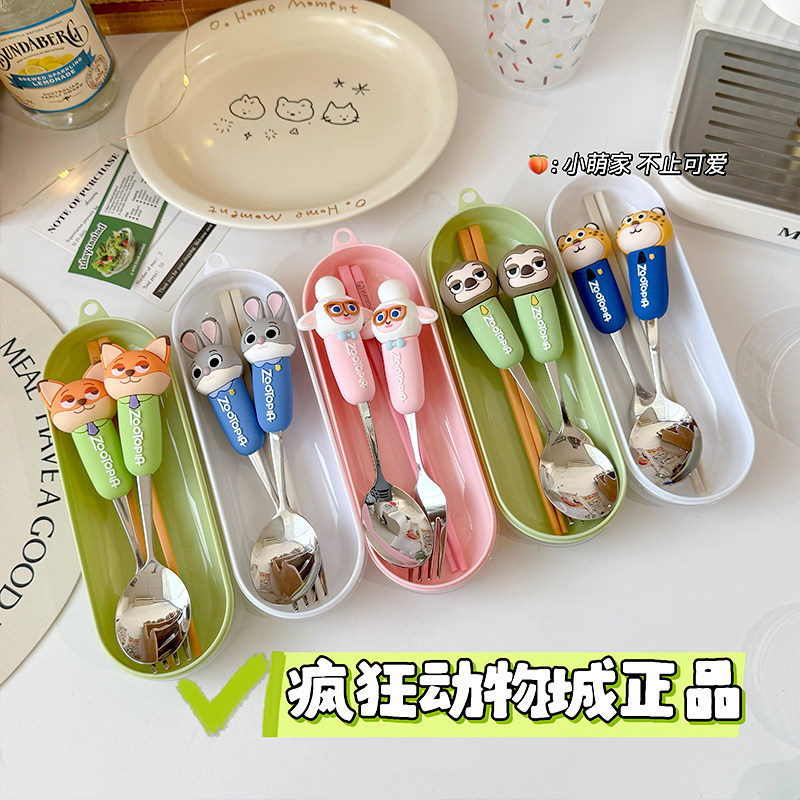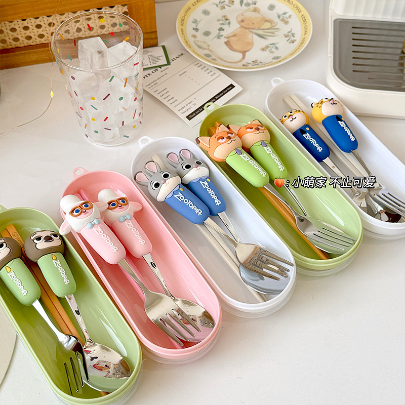 Zootopia Genuine Judy Nick 304 Stainless Steel Fork Spoon Portable Cutlery Set for Adults and Children