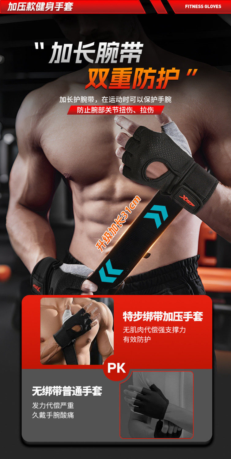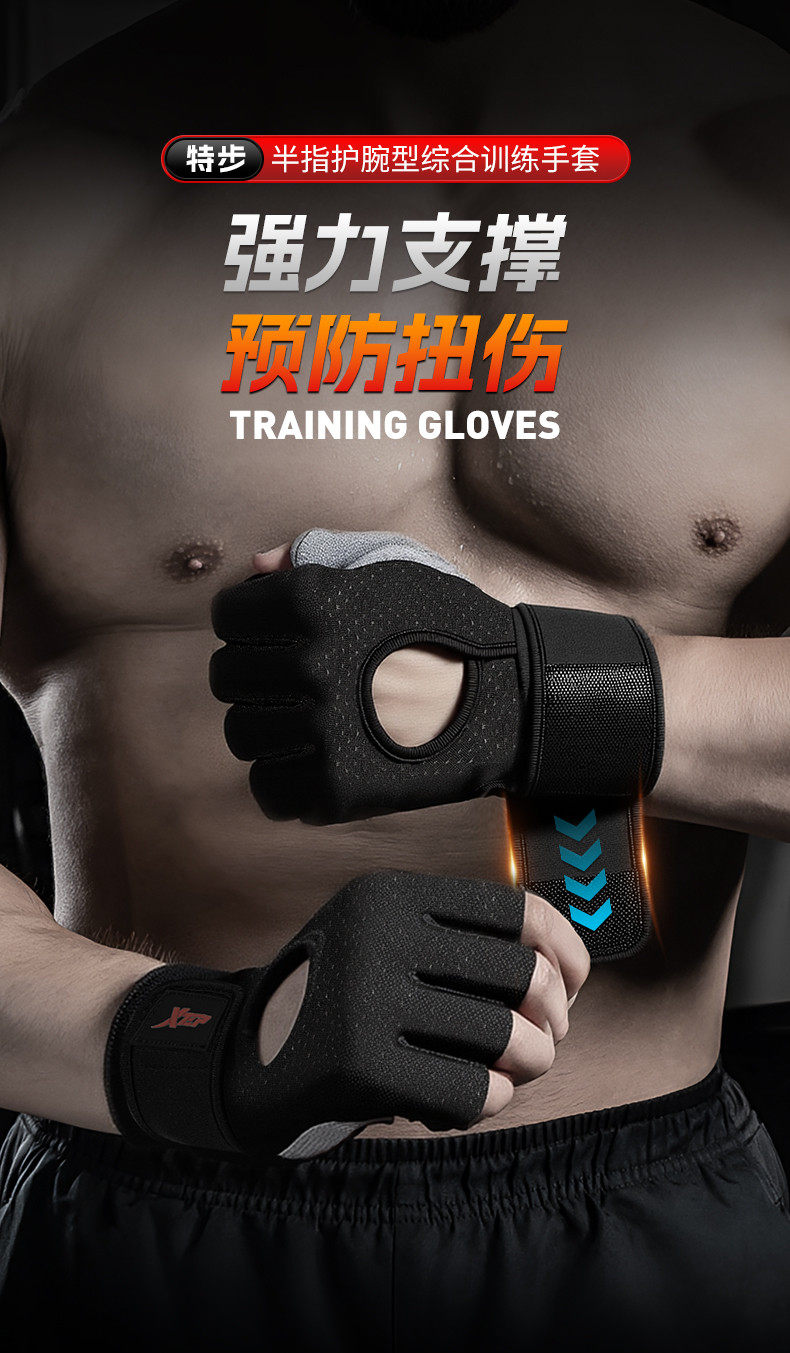 Xtep Fitness Gloves for Men, Specialized for Pull-Ups, Pull-Downs, and Horizontal Bar Exercises, Anti-Slip, Prevents Calluses, for Weightlifting and Training