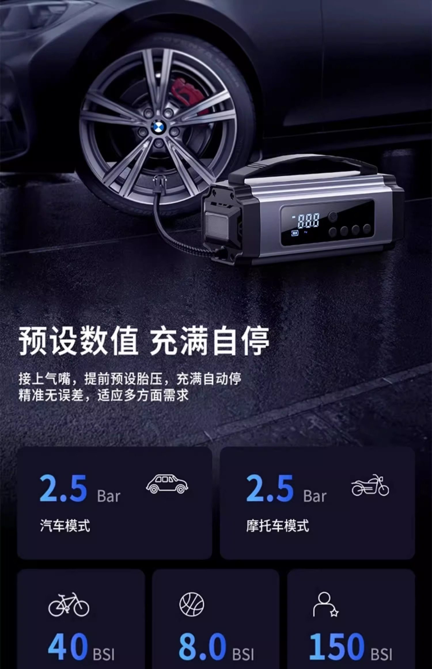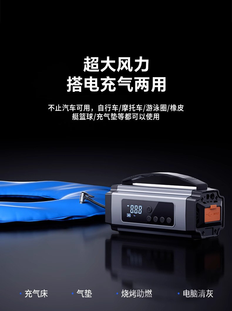 Car Air Pump, Car Emergency Power Supply, Tire Pressure Measurement, Power Bank, Air Pump Integrated Portable Car Use