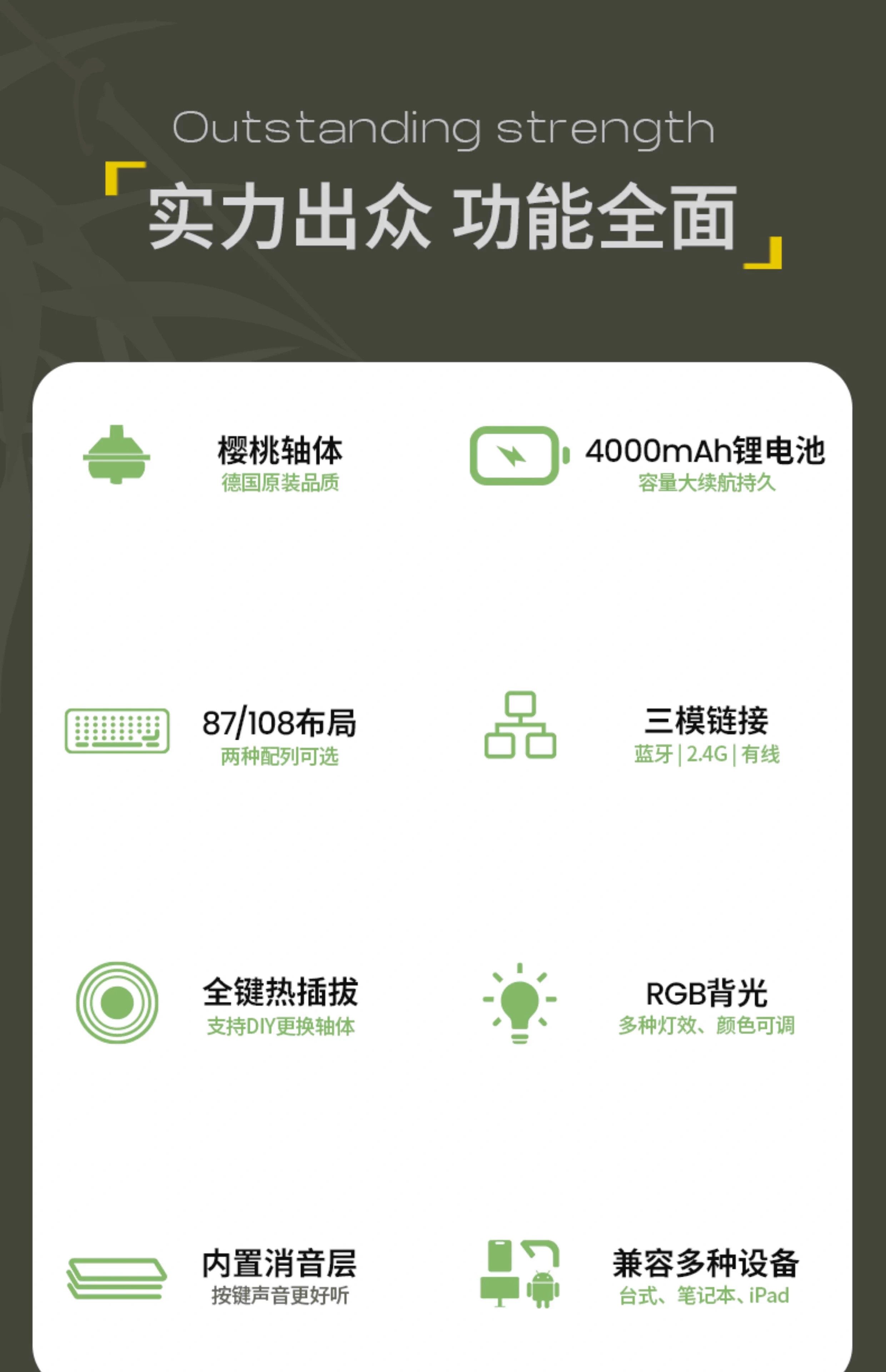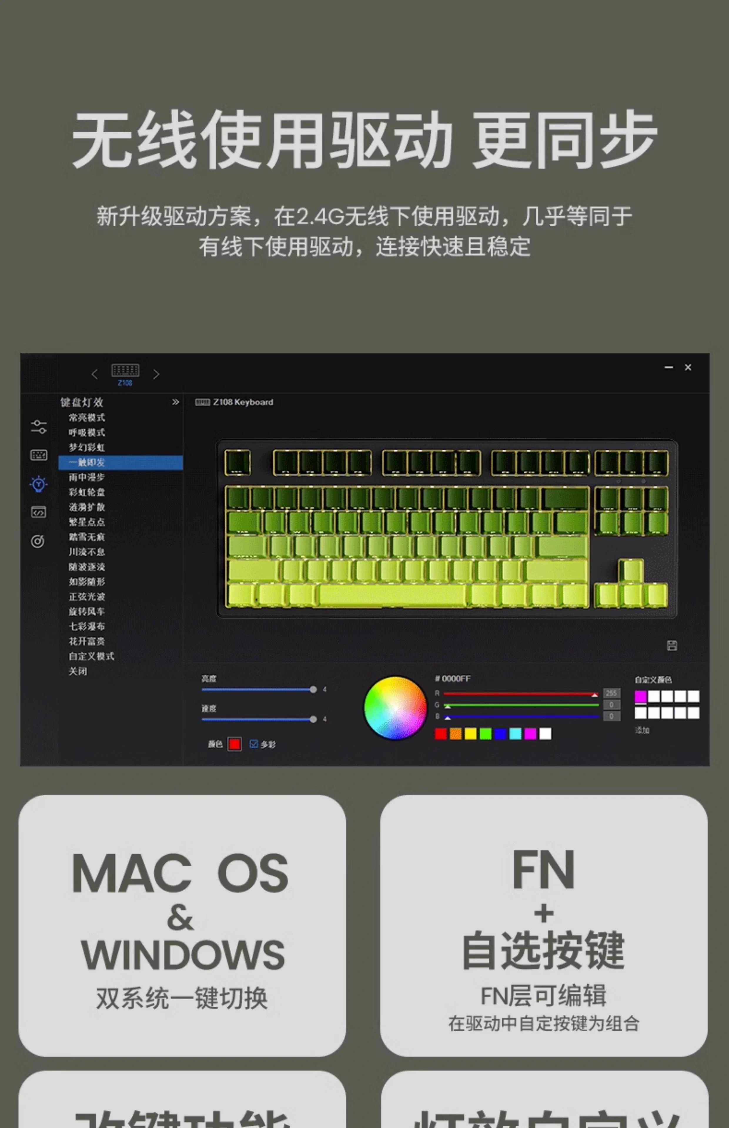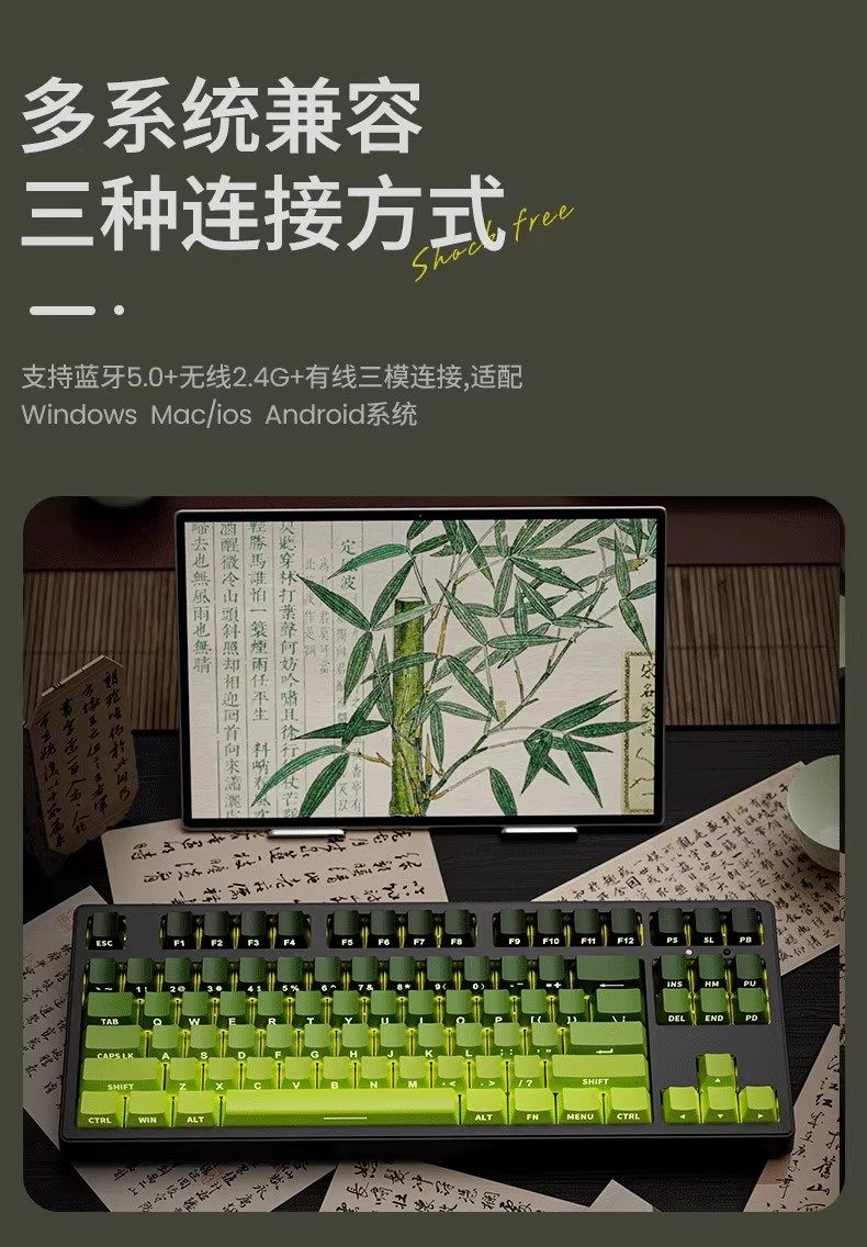 Forerunner Cherry Cherry Switch Z108 Wireless Mechanical Keyboard Green Wired 87 Bluetooth Gaming E-Sports Specialized