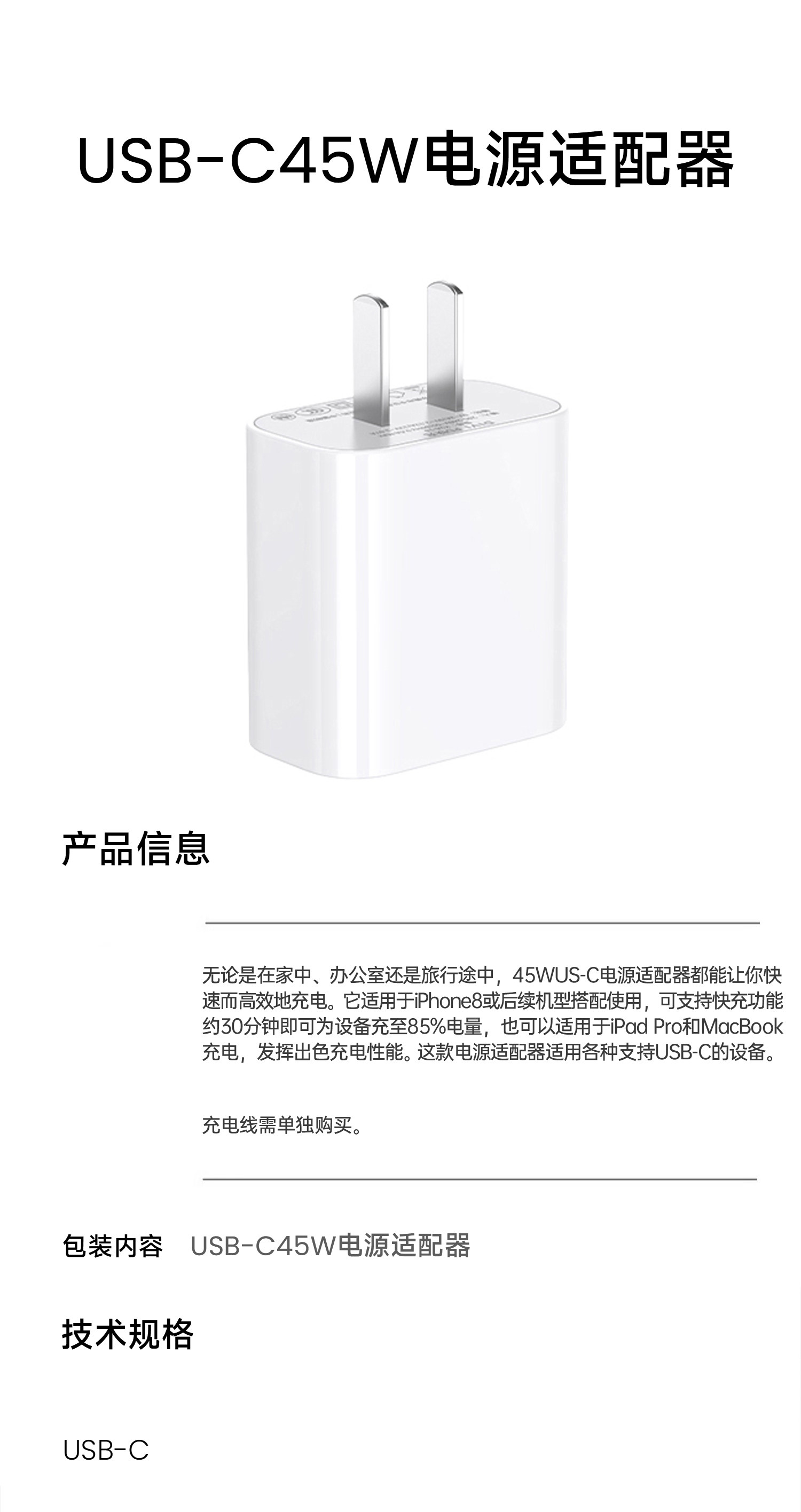 | Model | Suitable for All Apple 8-17 Series Chargers |