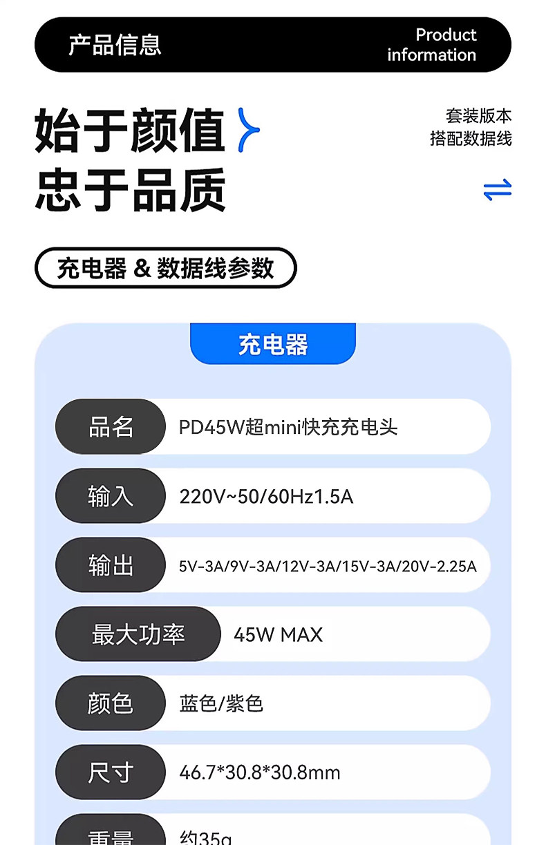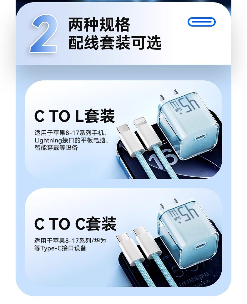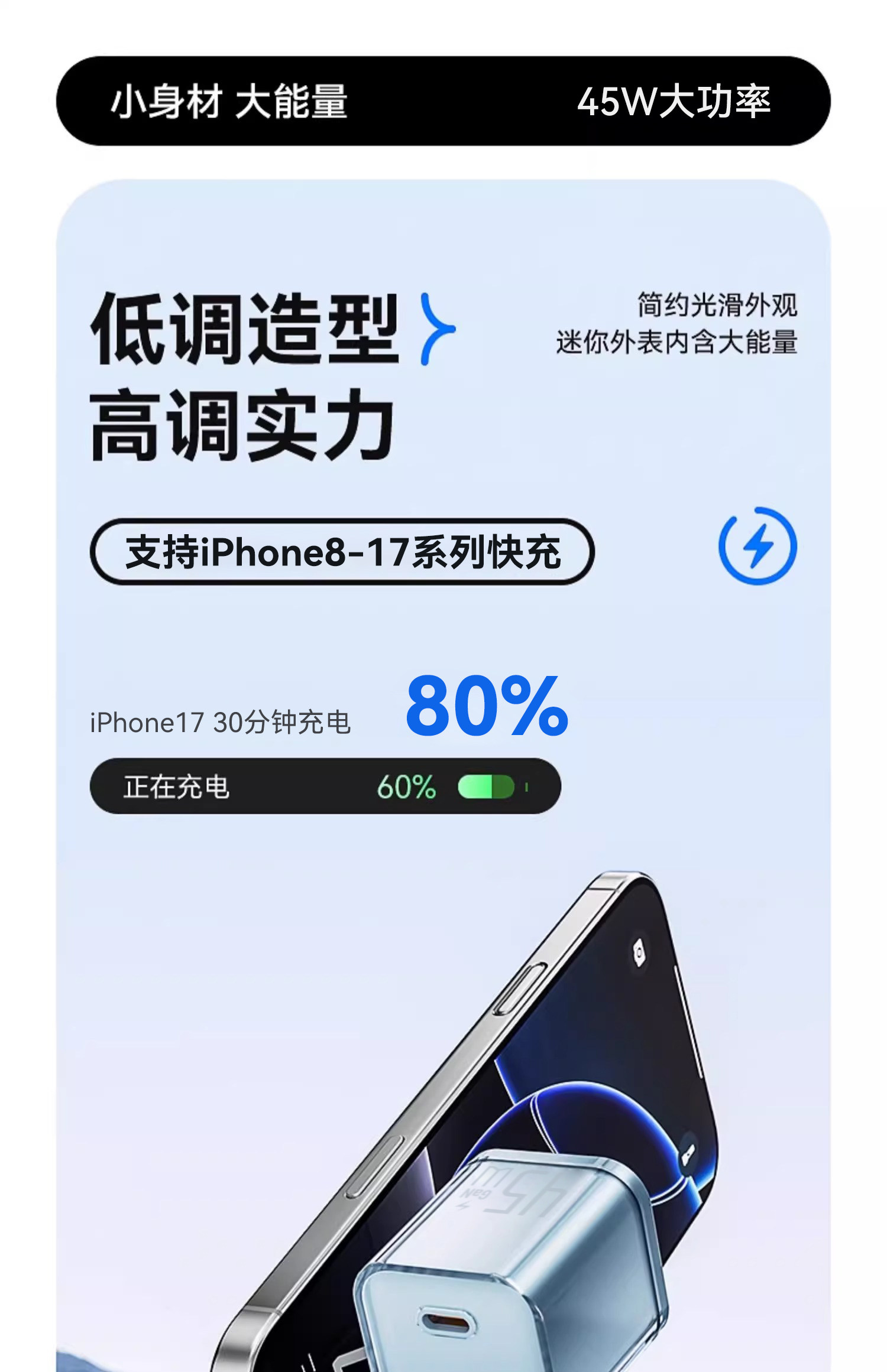 | Color Classification | Iced Purple | 45W Gan Charger[Low Temperature Fast Charging]3C Certification⭐Universal for All Series,Iced Blue | 45W Gan Charger[Low Temperature Fast Charging]3C Certification⭐Universal for All Series,Iced White | 45W Gan[Low Temperature Fast Charging]3C Certification⭐Universal for All Series,[8-14 Set]45W Ice Purple + Get 1 Free.0m Pd Fast Charging Cable,[8-14 Set]45W Ice Purple + Get 1 Free.5m Pd Fast Charging Cable,[8-14 Set]45W Ice Purple + Get 2 Free.0m Pd Fast Charging Cable,[8-14 Set]45W Ice Blue + Get 1 Free.0m Pd Fast Charging Cable,[8-14 Set]45W Ice Blue + Get 1 Free.5m Pd Fast Charging Cable,[8-14 Set]45W Ice Blue + Get 2 Free.0m Pd Fast Charging Cable,[8-14 Set]45W Ice White + Get 1 Free.0m Pd Fast Charging Cable,[8-14 Set]45W Ice White + Get 1 Free.5m Pd Fast Charging Cable,[8-14 Set]45W Ice White + Get 2 Free.0m Pd Fast Charging Cable,[15-17 Set]45W Ice Purple + Get 1 Free.0m Dual C Fast Charging Cable,[15-17 Set]45W Ice Purple + Get 1 Free.5m Dual C Fast Charging Cable,[15-17 Set]45W Ice Purple + Get 2 Free.0m Dual C Fast Charging Cable,[15-17 Set]45W Ice Blue + Get 1 Free.0m Dual C Fast Charging Cable,[15-17 Set]45W Ice Blue + Get 1 Free.5m Dual C Fast Charging Cable,[15-17 Set]45W Ice Blue + Get 2 Free.0m Dual C Fast Charging Cable,[15-17 Set]45W Ice White + Get 1 Free.0m Dual C Fast Charging Cable,[15-17 Set]45W Ice White + Get 1 Free.5m Dual C Fast Charging Cable,[15-17 Set]45W Ice White + Get 2 Free.0m Dual C Fast Charging Cable |