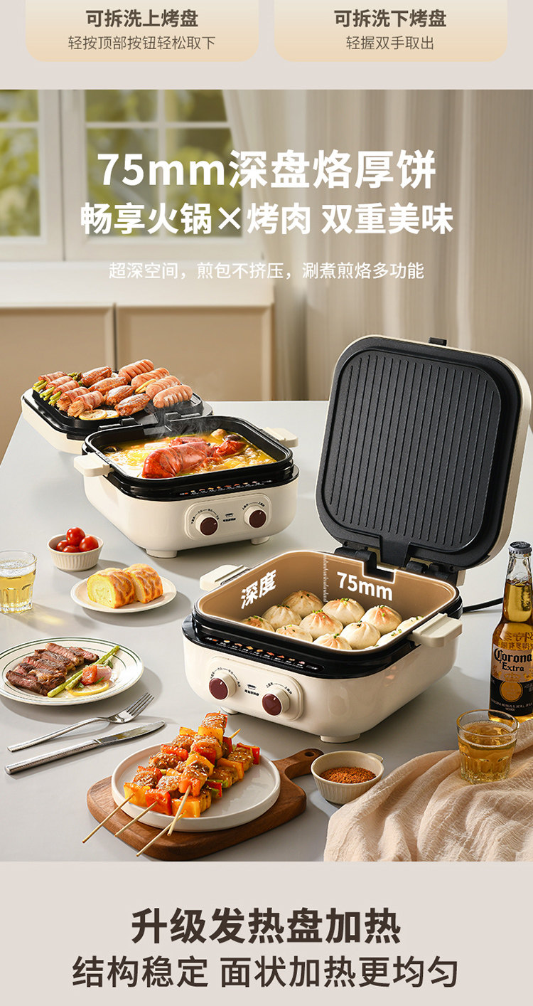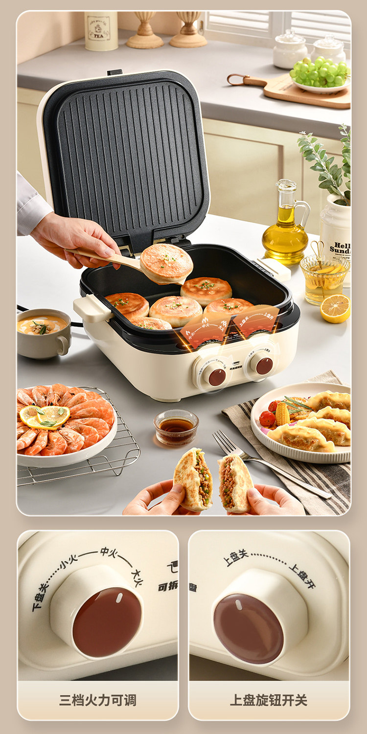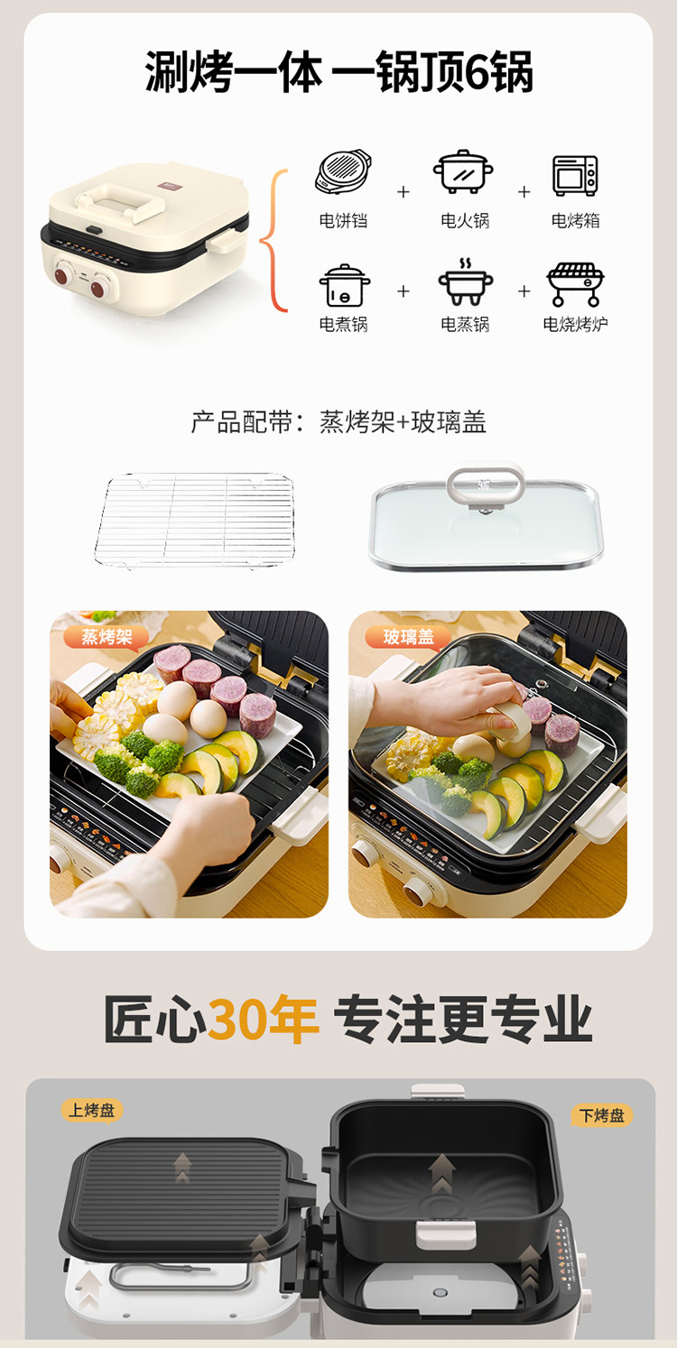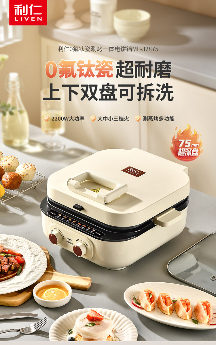 | Color Classification | [0 Fluorine Titanium Porcelain-Double Disk Removable and Washable]✅Comes with Special Pot Lid + Steam Rack + 75mm Deep Dish + Three Levels of Firepower,Liren - 30 Years of Focus on Electric Baking Pans |