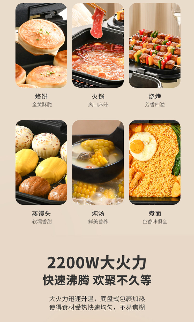 Liren Electric Griddle with Double-Sided Heating for Home Use, Enlarged and Deepened, Detachable and Washable, Multifunctional Electric Frying Pan, Shabu-Shabu and Grill All-In-One Hot Pot