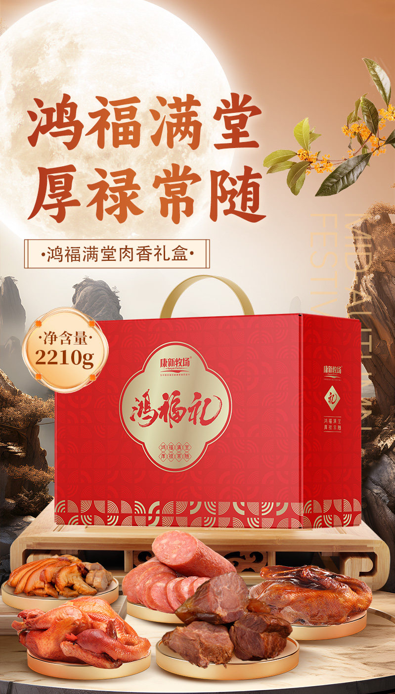 Kangxin Ranch New Year's Ready-To-Eat Food Gift Box Vacuum Packed Ready-To-Eat Braised Meat Gifts for Group Buying, Gifts for Elders, Gifts for Parents