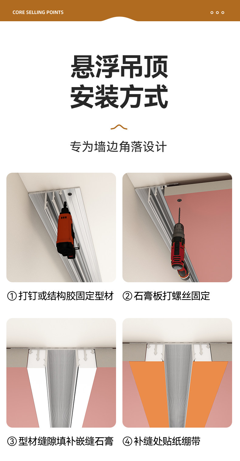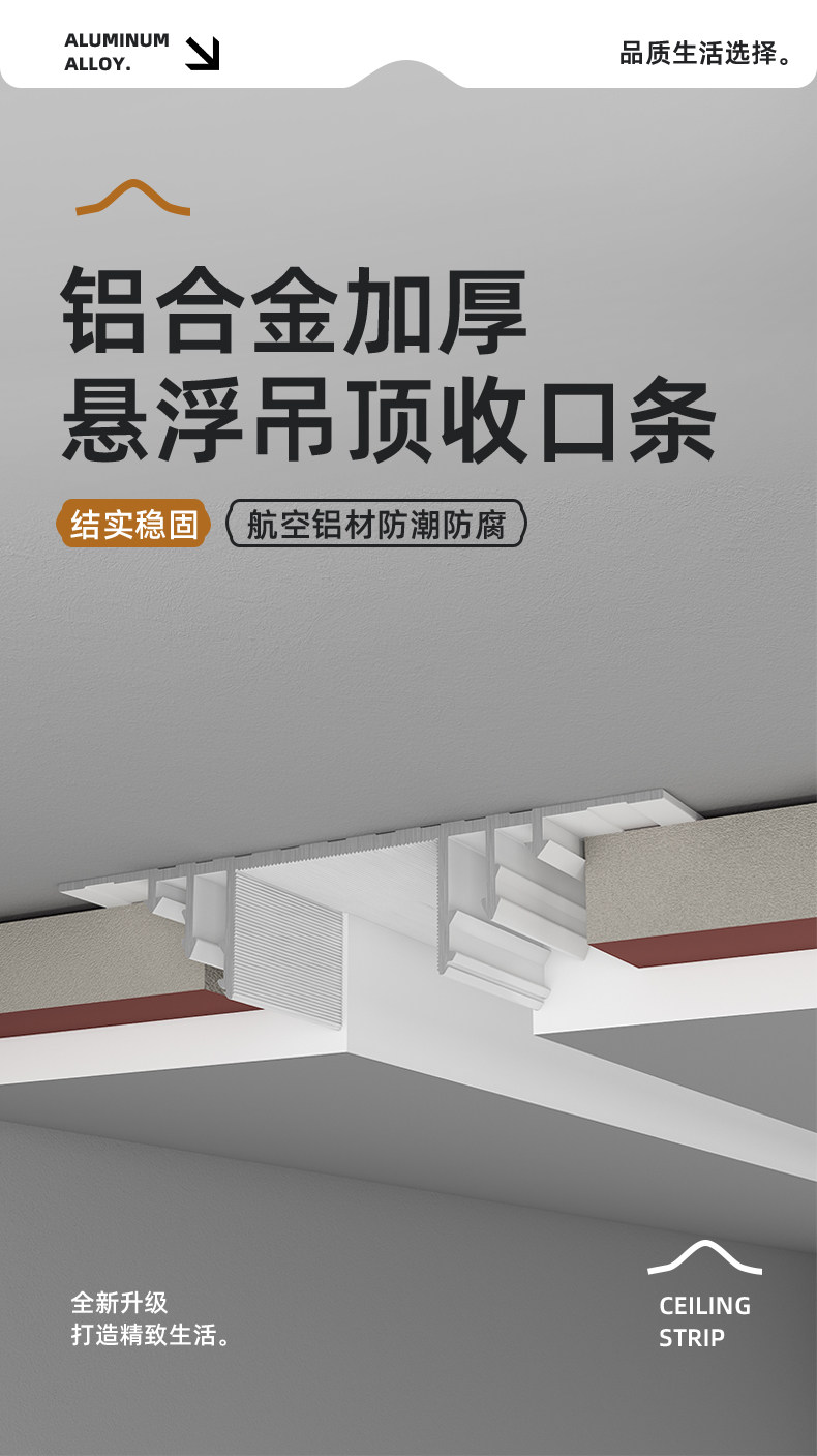 Suspended Ceiling Edge Strip Shadow Seam T-Shaped Minimalist Gypsum Board Edge Strip Invisible Aluminum Alloy U-Groove Decorative Line