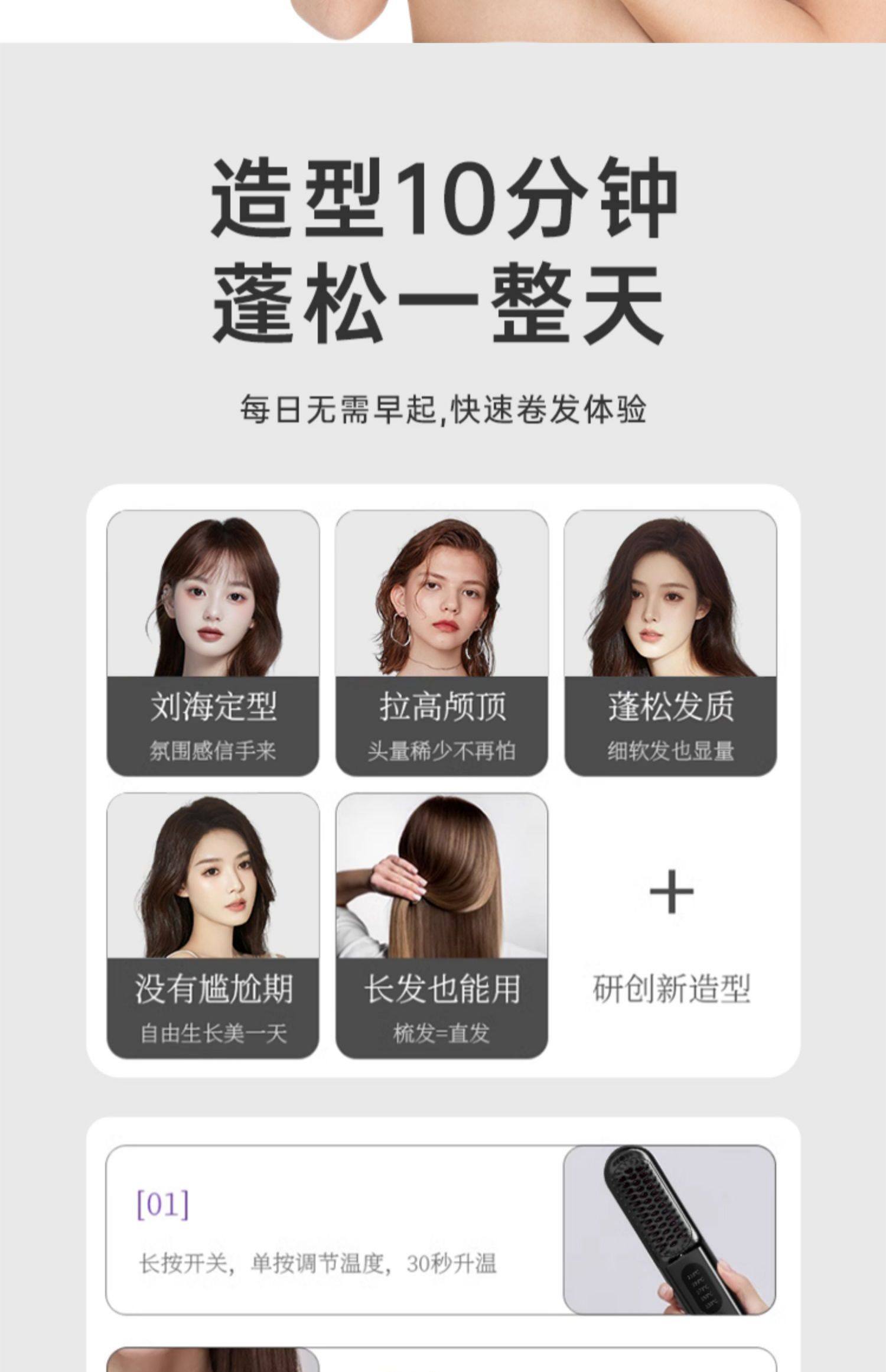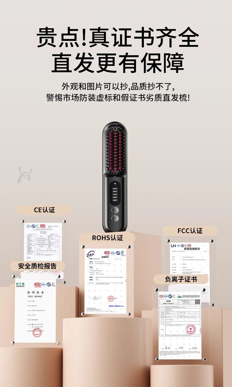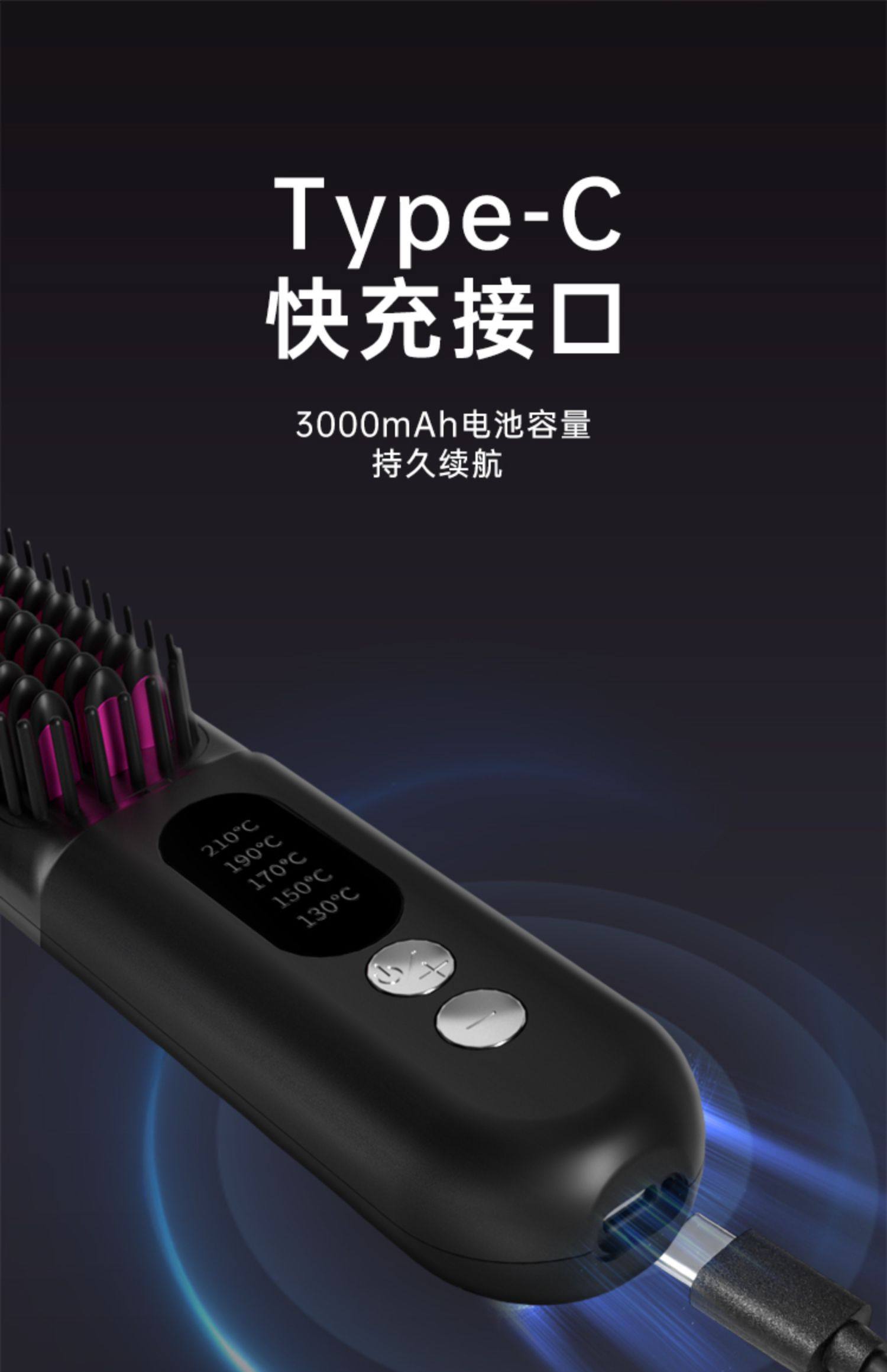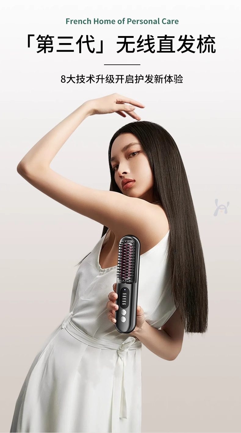 Negative Ion Wireless Hair Straightening Comb, Does Not Damage Hair, Portable Straightening and Curling Dual-Use Flat Iron, Curling Wand, Volumizing, High Crown, Anti-Scald