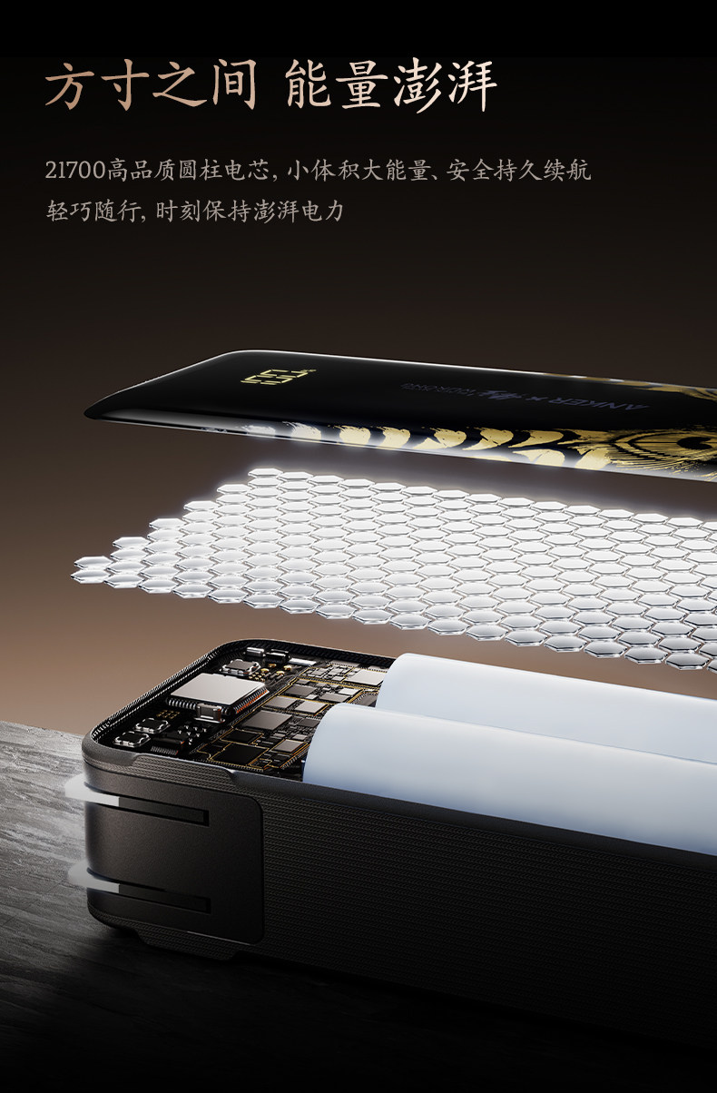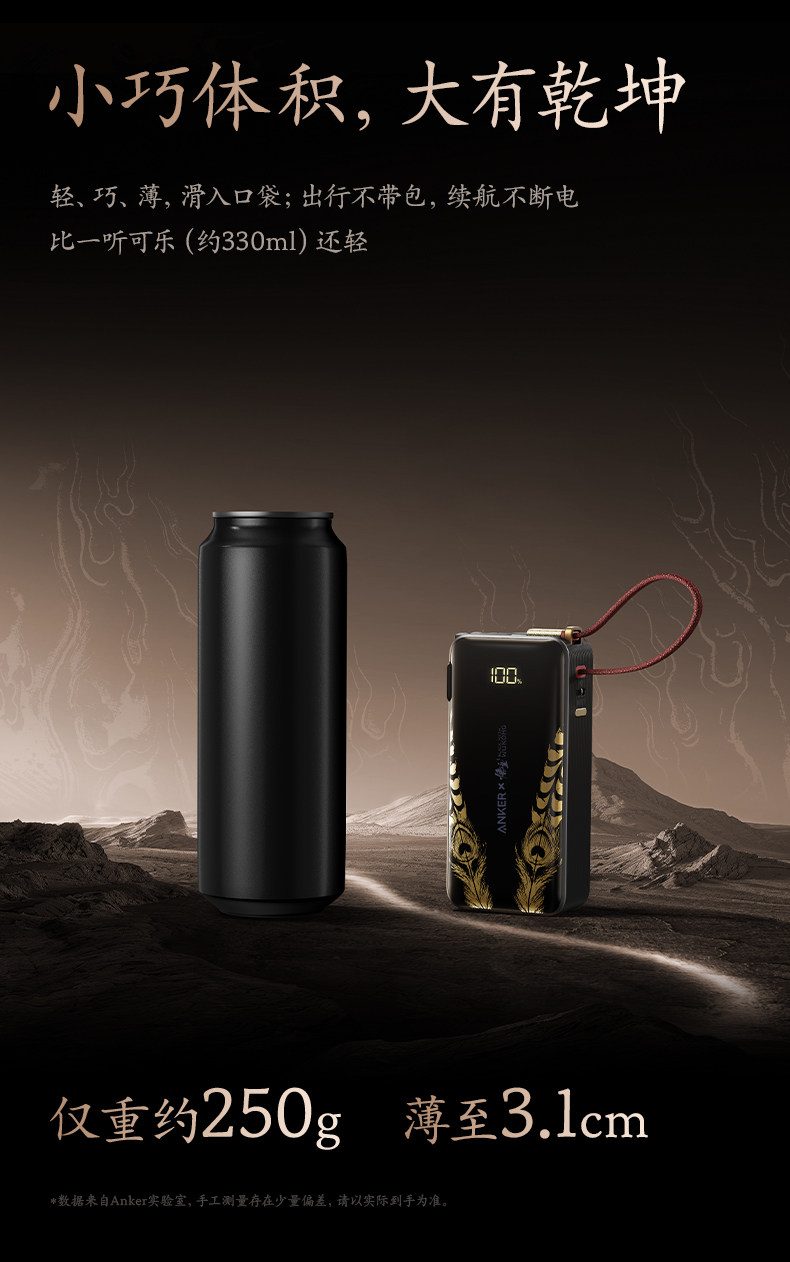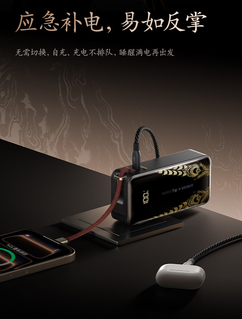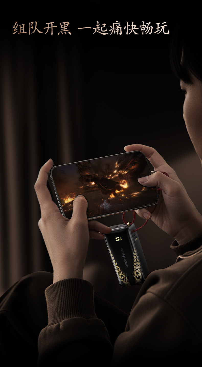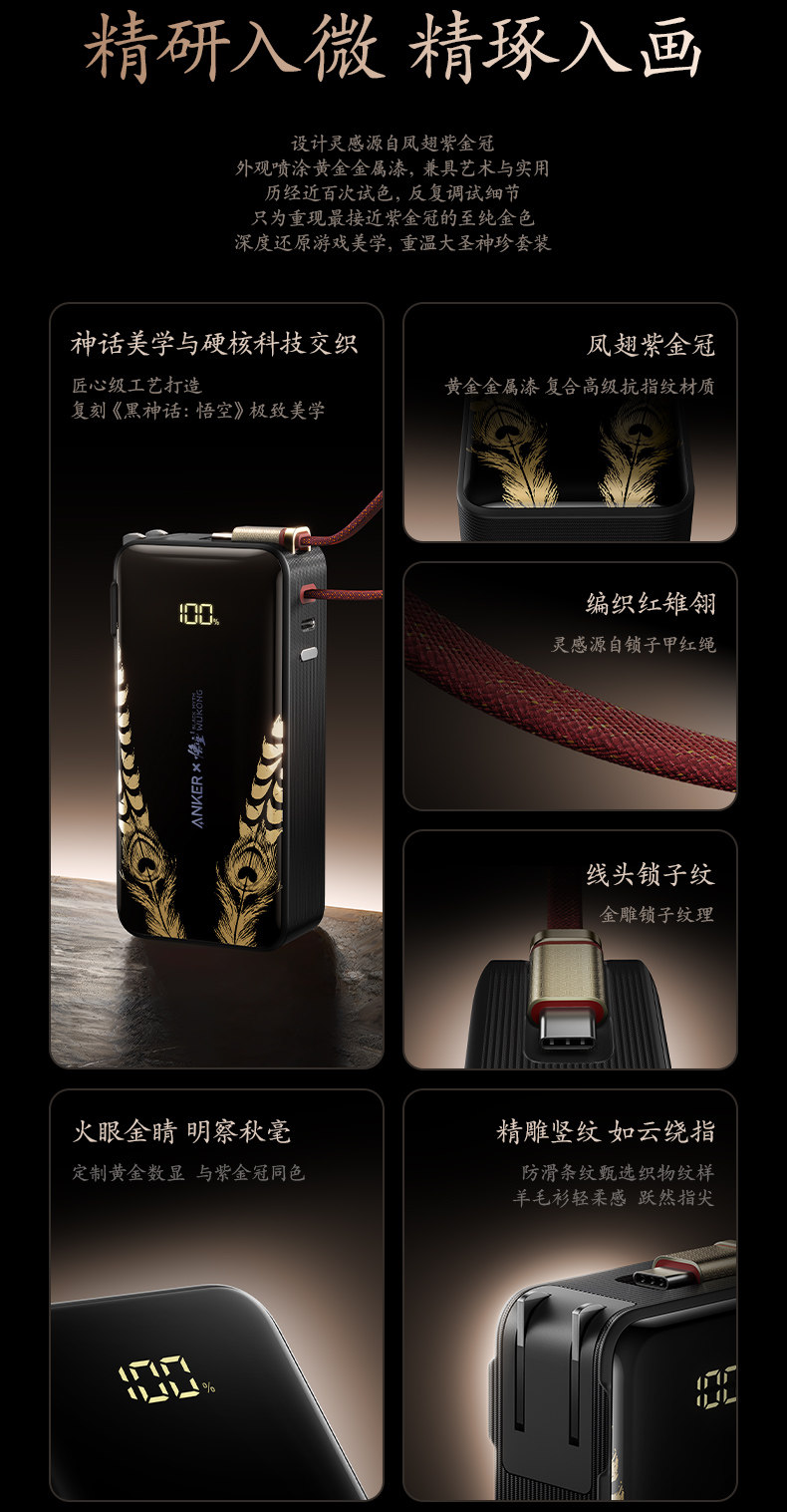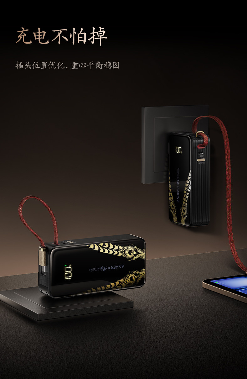 Anker Black Myth: Wukong Collaboration 3-in-1 Portable Power Bank with Plug and Built-In Cable, 3C Certified, Airplane and High-Speed Rail Approved, Fast Charging, Compatible with Apple 17 Phones