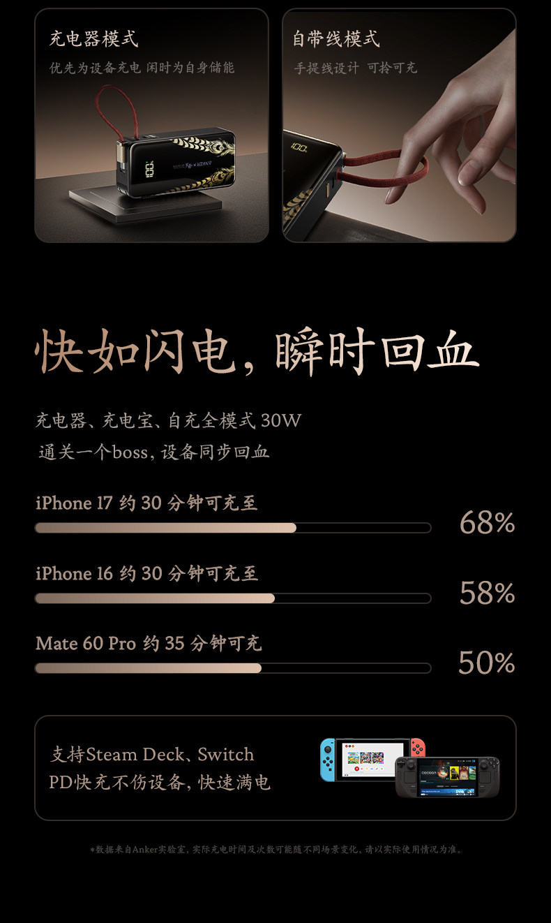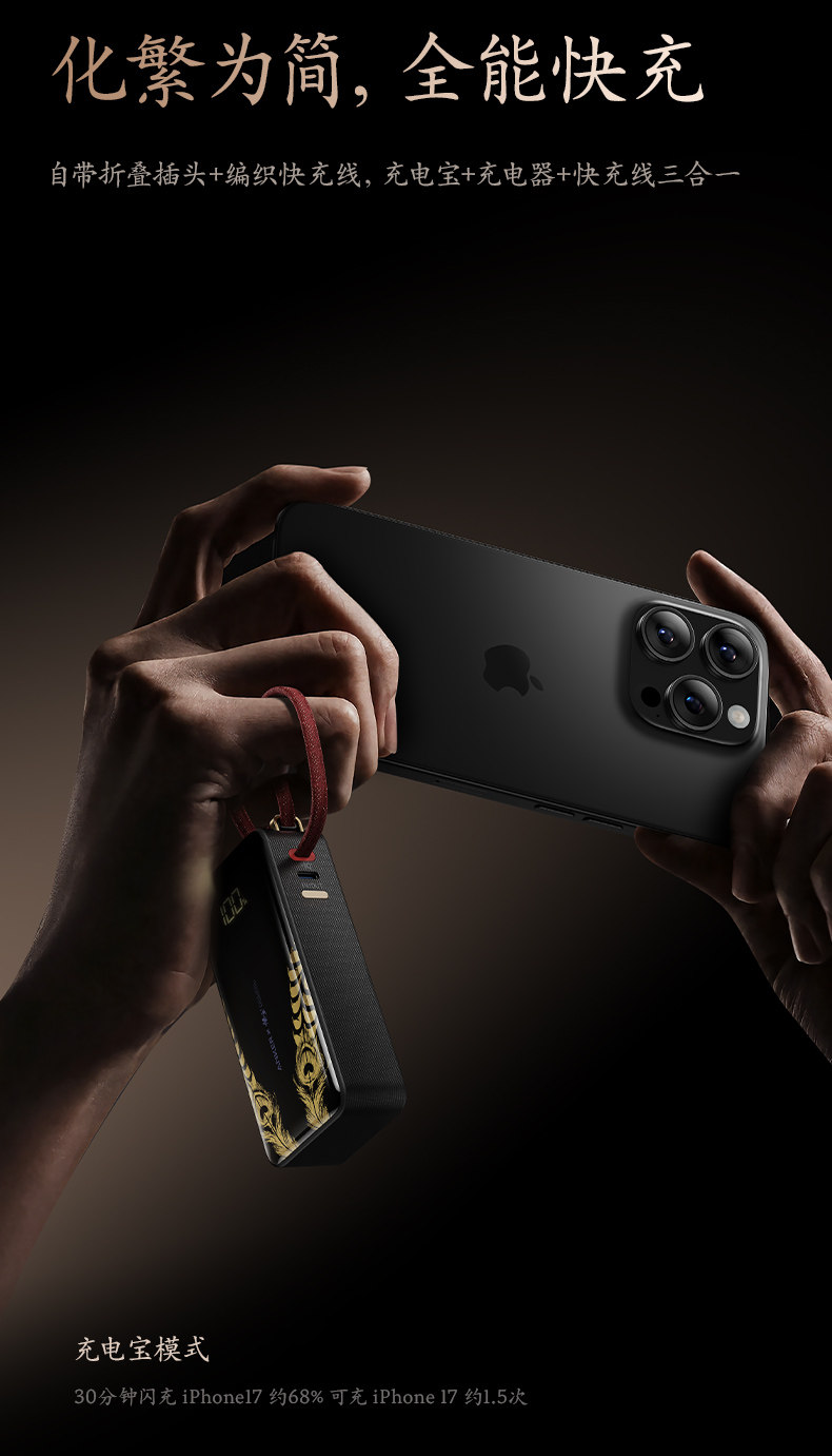 | Color Classification | 【Black Myth Collaboration】Comes with Charging Adapter + Type-C Pull-Tab Cable|30W Super Fast Charge|Can Be Taken on Airplanes and High-Speed Rail| Flash,Add to Favorites & Cart|【On Sale October 10Th at 10 Am】Officially Licensed "Hollow Knight: Void Taker"|18 Months Replacement Only, No Repair,Black | 3-in-1 Power Bank with Built-In Plug + Type-C Pull-Up Cable | Suitable for Apple 15-17/Huawei Android Phones |