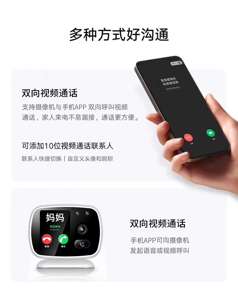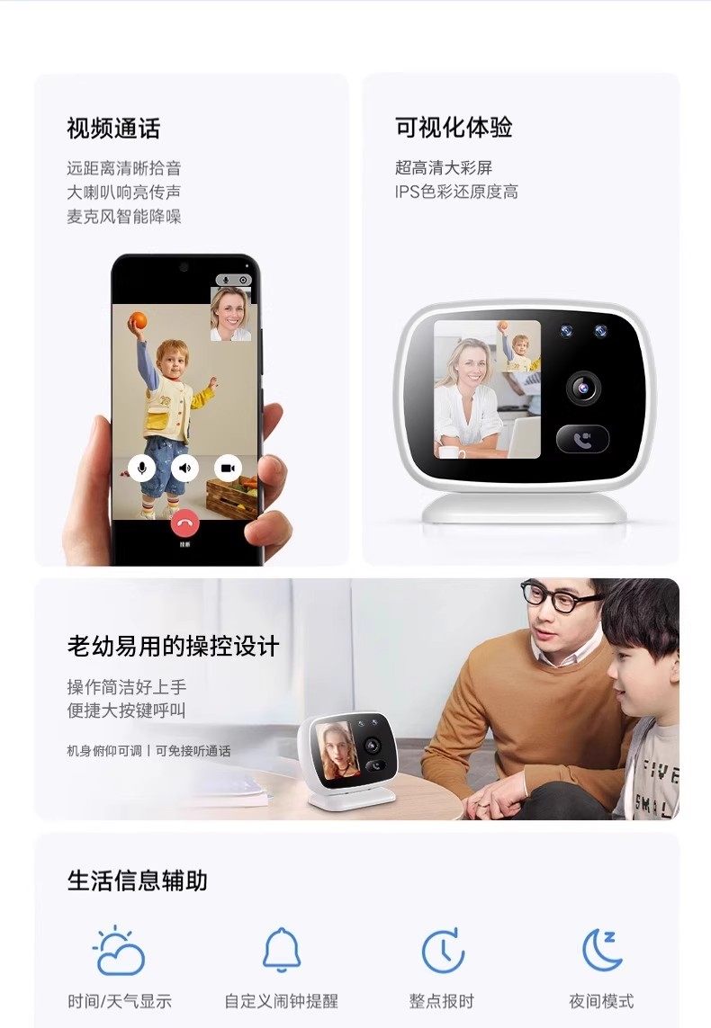 | Color Classification | 2.4gWiFi-2.8inch - Ultra-Clear Two-Way Video Call + One-Click Call + Smart Home Anti-Theft + Humanoid Tracking,2.4gWiFi-2.8inch Extended Battery Life Version [Ultra-Clear Two-Way Video + One-Click Call] Intelligent Home Security, Anti-Theft + Humanoid Tracking,WiFi-2.Upgraded Version [Two-Way Video + Smart Home Monitoring (Dual Use)] Ultra Hd Dual Lens + One-Key Call + Smart Home Anti-Theft + Humanoid Tracking,WiFi-2.8inch Upgraded Battery Life Version [Two-Way Video + Smart Home Monitoring (Dual Use)] Ultra-Clear Dual Lens + One-Click Call + Smart Home Anti-Theft + Humanoid Tracking,WiFi-2.8inch Flagship Edition [Two-Way Video + Smart Home Monitoring (Dual Use)] Ultra Hd Dual Lens + One-Key Call + Smart Home Anti-Theft + Humanoid Tracking,WiFi-2.8inch Flagship Edition Extended Battery Life [Two-Way Video + Smart Home Monitoring (Dual Use)] Ultra Hd Dual Lens + One-Key Call + Smart Home Anti-Theft + Humanoid Tracking,[For Families with Elderly or Young Children at Home]Flagship New Wifi[Two-Way Video + Smart Home Monitoring (Dual Use)]One-Click Call + Smart Home Viewing + Humanoid Tracking,[For Families with Elderly or Young Children at Home]Flagship New Wifi Battery Life Version[Two-Way Video + Smart Home Monitoring (Dual Use)]One-Click Call + Smart Home Viewing + Humanoid Tracking,[4g No Top-Up, No Monthly Fees - 2.8inch]High-Definition Two-Way Video Call + One-Click Call (Remote Without Network) + Intelligent Home Security and Anti-Theft + Humanoid Tracking,[4g No Recharge Required - 2.8inch]+Power Off Battery Life Version]High-Definition Two-Way Video Call + One-Click Call (Remote Without Network) + Intelligent Home Security and Anti-Theft + Humanoid Tracking |