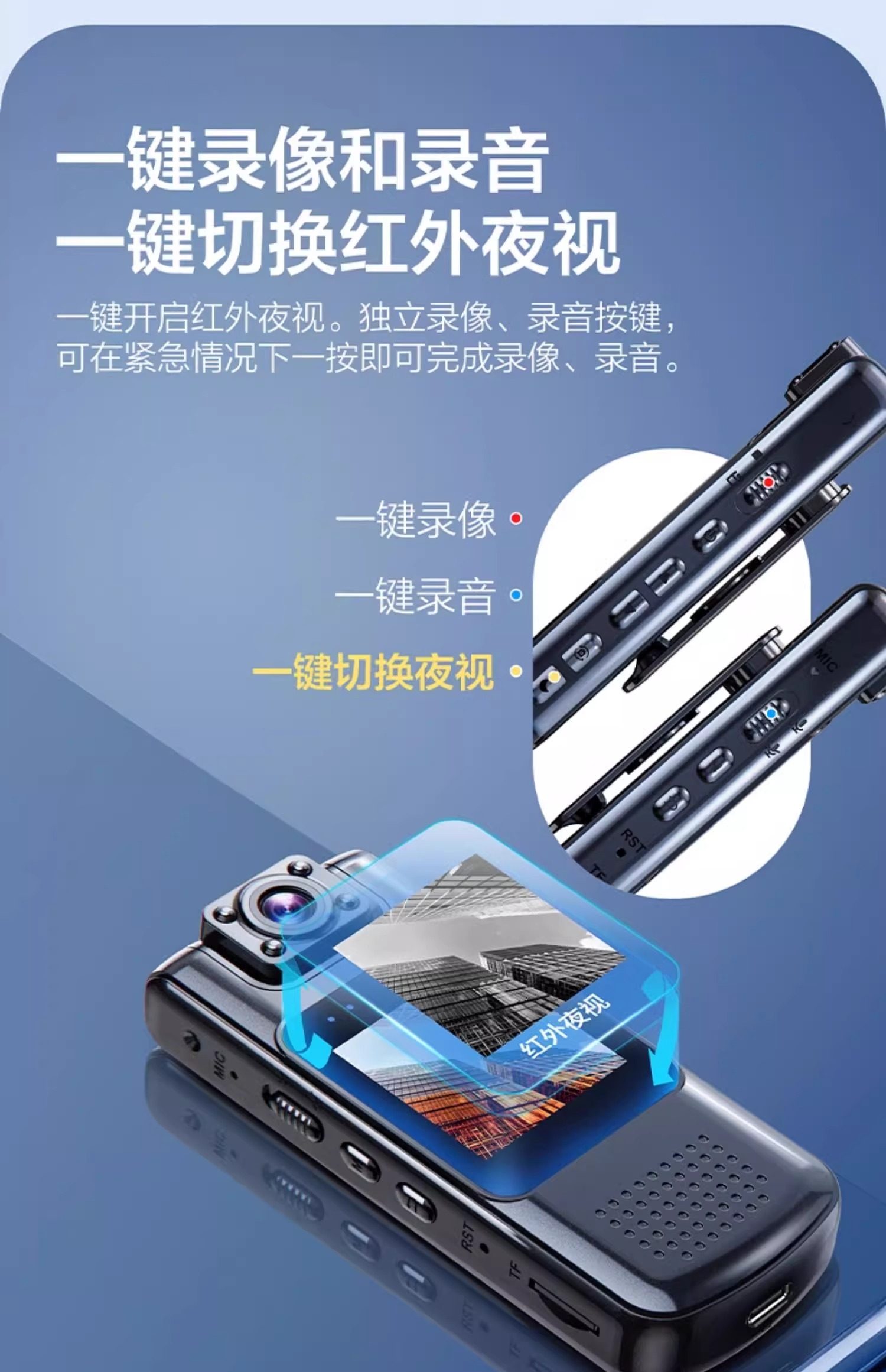 Law Enforcement Recorder, High-Definition 4K Video Recorder, Chest-Worn Camera, Motorcycle Sports Recording Pen