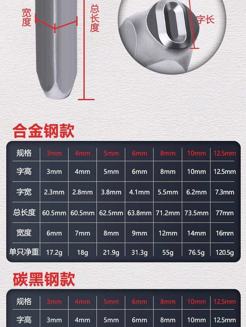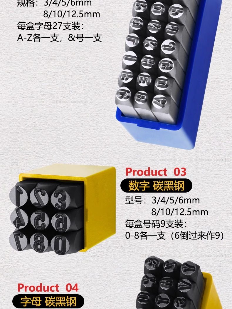 | Color Classification | 3mm Carbon Black Steel [Number 0-8] (Yellow Box),4mm Carbon Black Steel [Numbers 0-8] (Yellow Box),6mm Carbon Black Steel [Numbers 0-8] (Yellow Box),8mm Carbon Black Steel [Numbers 0-8] (Yellow Box),10mm Carbon Black Steel [Number 0-8] (Yellow Box),3mm Alloy Steel [Numbers 0-8] (Blue Box),4mm Alloy Steel [Numbers 0-8] (Blue Box),5mm Alloy Steel [Numbers 0-8] (Blue Box),6mm Alloy Steel [Numbers 0-8] (Blue Box),8mm Alloy Steel [Numbers 0-8] (Blue Box),10mm Alloy Steel [Numbers 0-8] (Blue Box) |