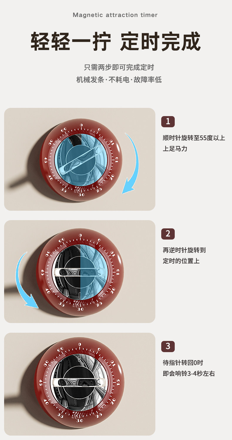 Kitchen Timer, a Self-Discipline Tool for Primary School Students, Magnetic Mechanical Reminder, Cooking Timer, Dedicated for Home Study