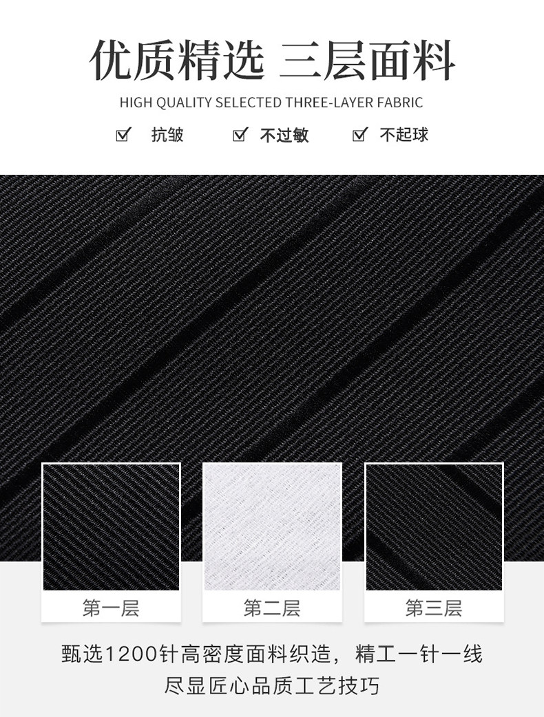 | Color Classification | Black Twill 48*8 [Zipper Style],Black Fine Lines 48*8 [Zipper Style],Blue Twill 48*8 [Zipper Style],Blue Fine Lines 48*8 [Zipper Style],Light Gray Twill 48*8 [Zipper Style],Dark Gray Twill 48*8 [Zipper Style],Black Twill Plaid 48*8 [Zipper Style],Black Blade Pattern 48*8 [Zipper Style],Matte Pure Black 48*8 [Zipper Style],Glossy Pure Black 48*5 [Zipper Style],Sapphire Blue and White Twill 48*8 [Zipper Style],Matte Black Narrow Style 38*5 [Zipper Style],Navy Blue Bright Blue Twill 48*8 [Zipper Style],Blue Blade Pattern 48*8 [Zipper Style],Casual Blue and White Twill 48*8 [Zipper Style],Blue Fine Lines 48*6 [Zipper Style],Black Fine Lines 48*6 [Zipper Style],Black White Dot Twill 48*8 [Zipper Style],Matte Wine Red 48*8 [Zipper Style],Burgundy Stripes 48*8 [Zipper Style],Burgundy Fine Lines 48*8 [Zipper Style],Red Fine Lines 48*8 [Zipper Style],Black Fine Lines 145*6 [Hand-Printed Model],Black Twill 145*8 [Hand-Printed Model],Black Fine Lines 145*8 [Hand-Printed Model],Matte Black 145*8 [Hand-Printed Model],Glossy Black 145*8 [Hand-Printed Model],Glossy Black 145*5 [Hand-Printed Model],Matte Black 145*5 [Handmade Model],Blue Fine Lines 145*8 [Hand-Printed Model],Blue Twill 145*8 [Hand-Printed Model],Royal Blue and White Twill 145*8 [Hand-Printed Model],Navy Blue Bright Blue Twill 145*8 [Hand-Printed Model] |