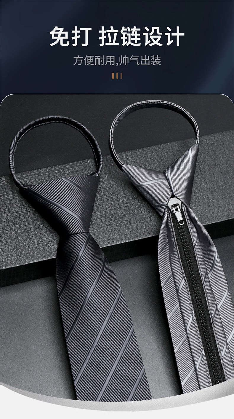 Black Tie for Men, High-End, No-Knot, Formal, Business, Korean Style, Casual, Lazy Style, Zipper Type, Striped, Wedding Groom