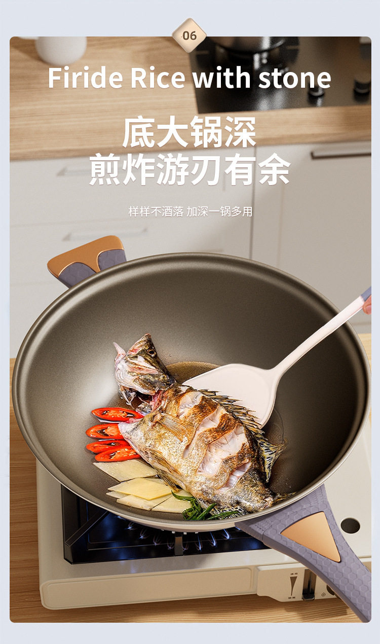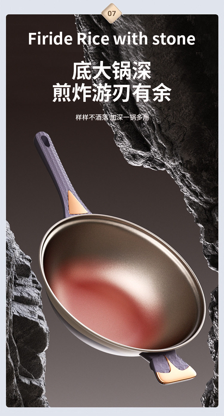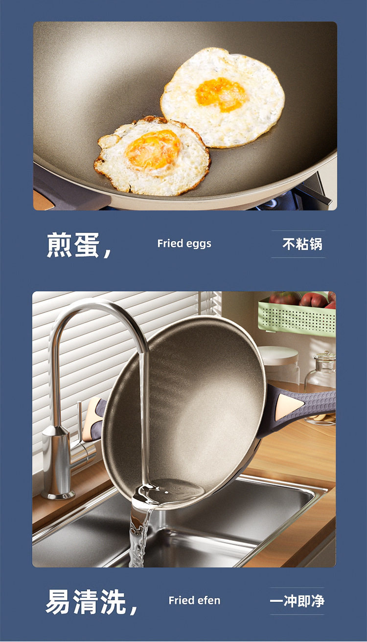 Two-Color Titanium Non-Stick Pan Without Coating, Micro-Pressure Household Titanium Frying Pan, Suitable for Induction Cookers and Gas Stoves, Flat-Bottomed Pan