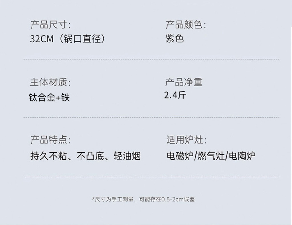 | Color Classification | 32 Titanium Micro Pressure Cooker[Single Pot],32 Titanium Micro Pressure Cooker[Single Pot + Lid],32 Titanium Micro Pressure Cooker[Single Pot + Lid + Steamer],34 Titanium Micro Pressure Cooker[Single Pot + Pot Ears],34 Titanium Micro Pressure Cooker[Single Pot + Pot Ears + Pot Lid],34 Titanium Micro Pressure Cooker[Single Pot + Pot Ears + Pot Lid + Steamer],Double Purple Titanium Micro-Pressure Cooker |