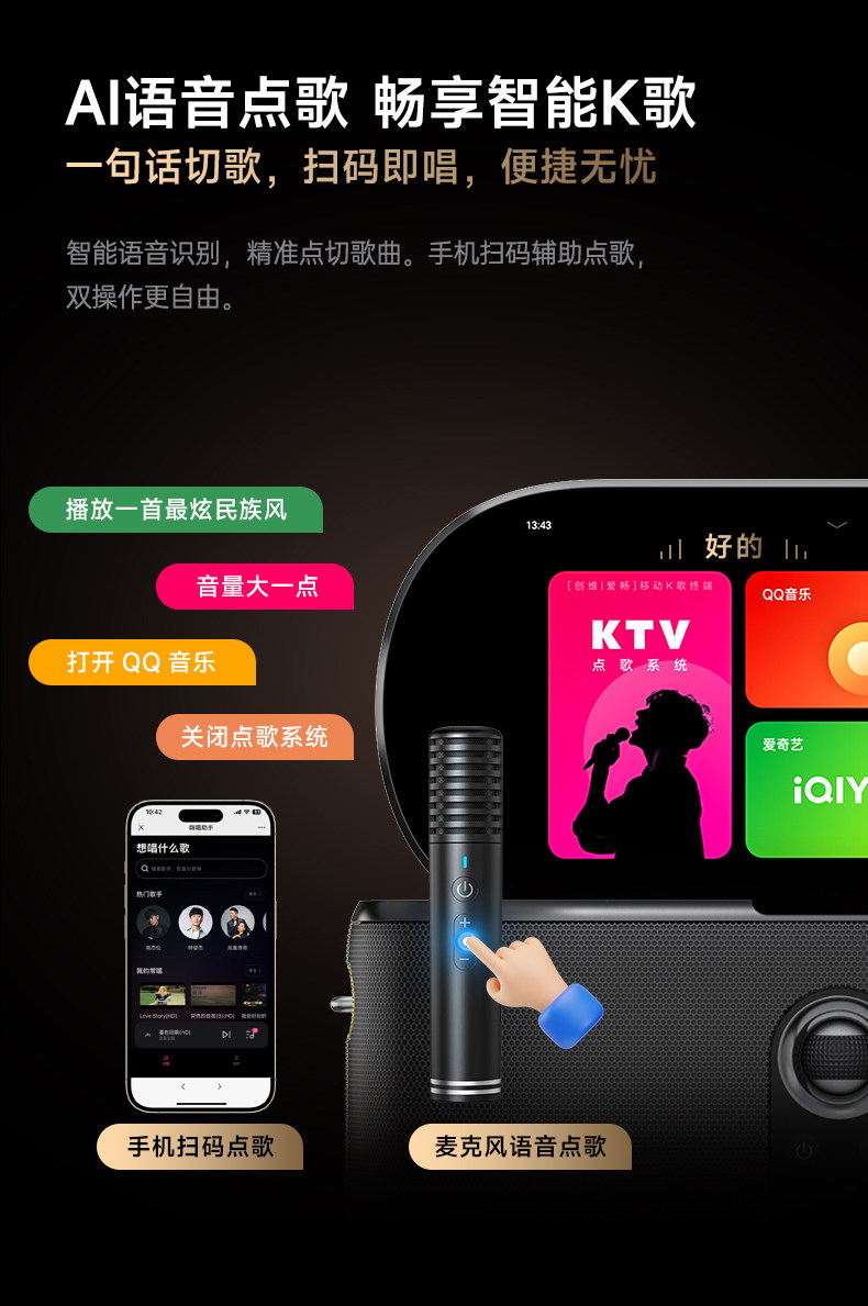 Skyworth Mobile Ktv Outdoor Portable Karaoke Speaker with Large Screen, Long Battery Life, Home Karaoke Player, Family Speaker