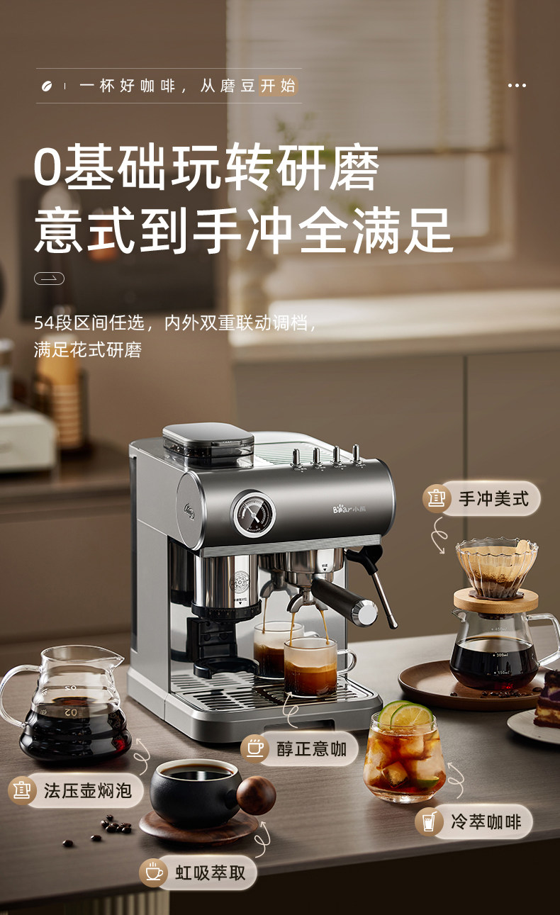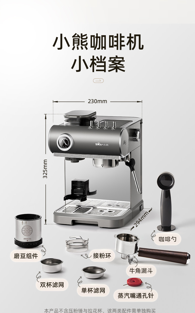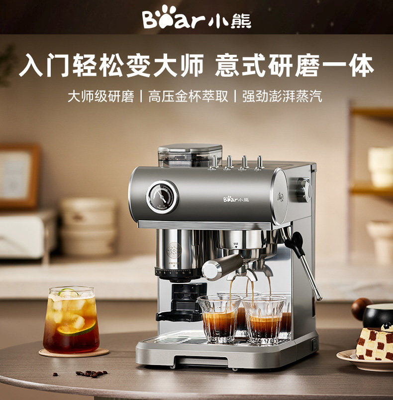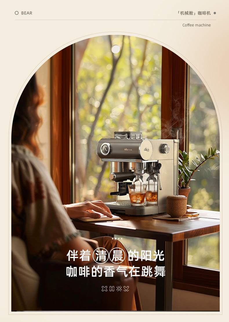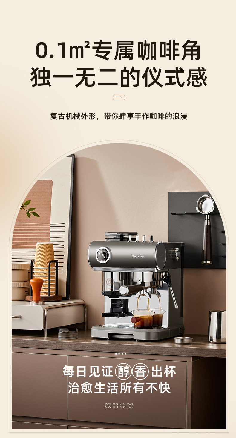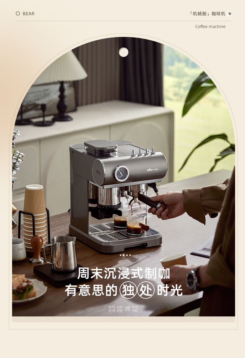 Bear Mechanical Cabin Coffee Machine, Small Household Italian-Style Grinder, Non-Capsule, Semi-Automatic, Freshly Ground, Official