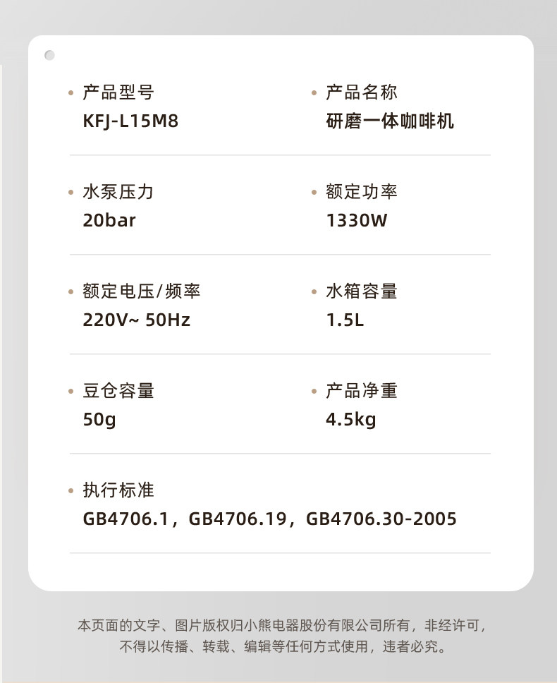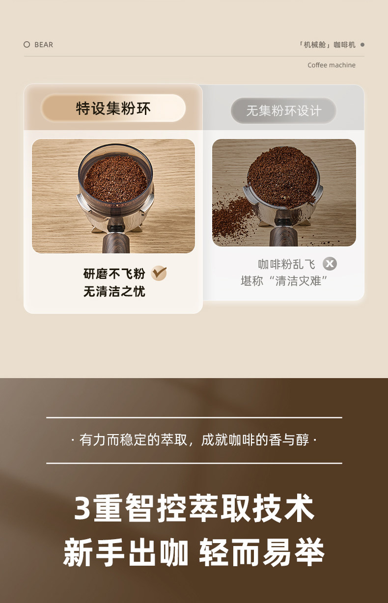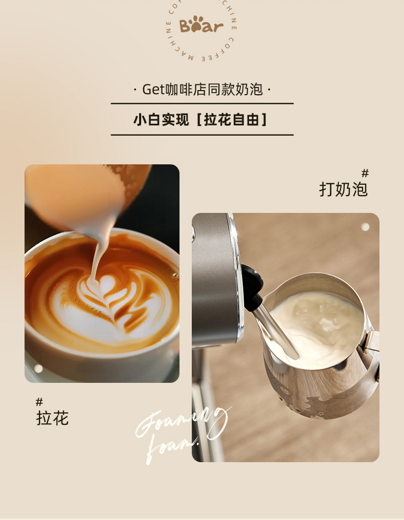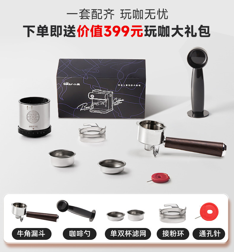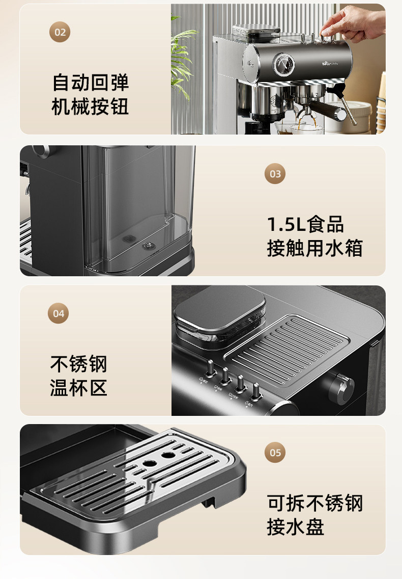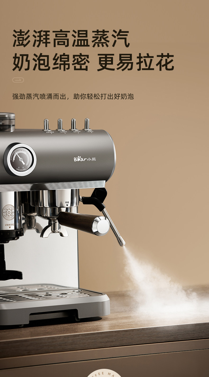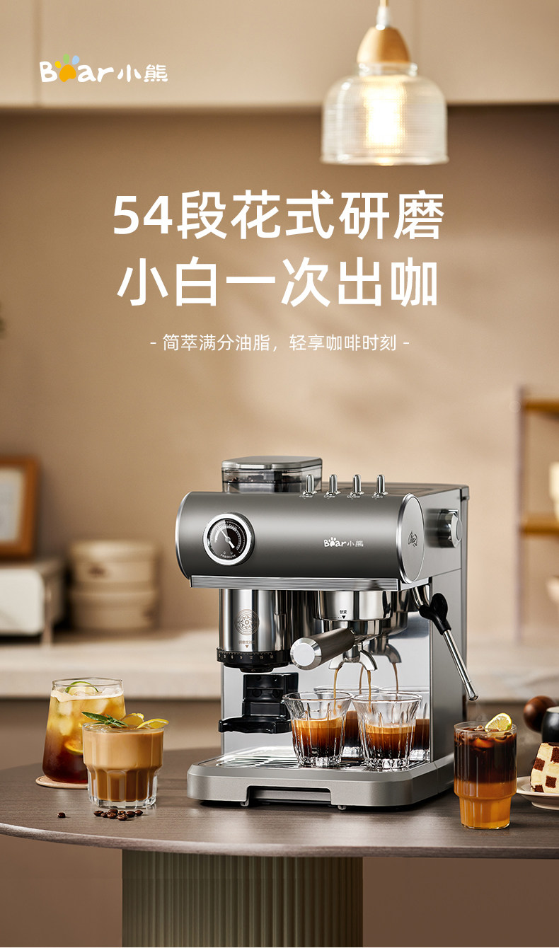 Bear Mechanical Cabin Coffee Machine, Small Household Italian-Style Grinder, Non-Capsule, Semi-Automatic, Freshly Ground, Official
