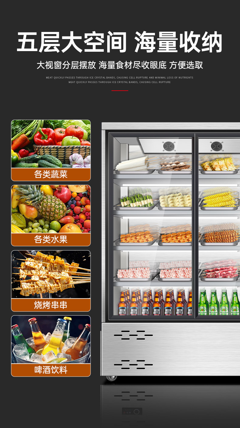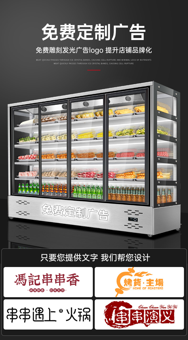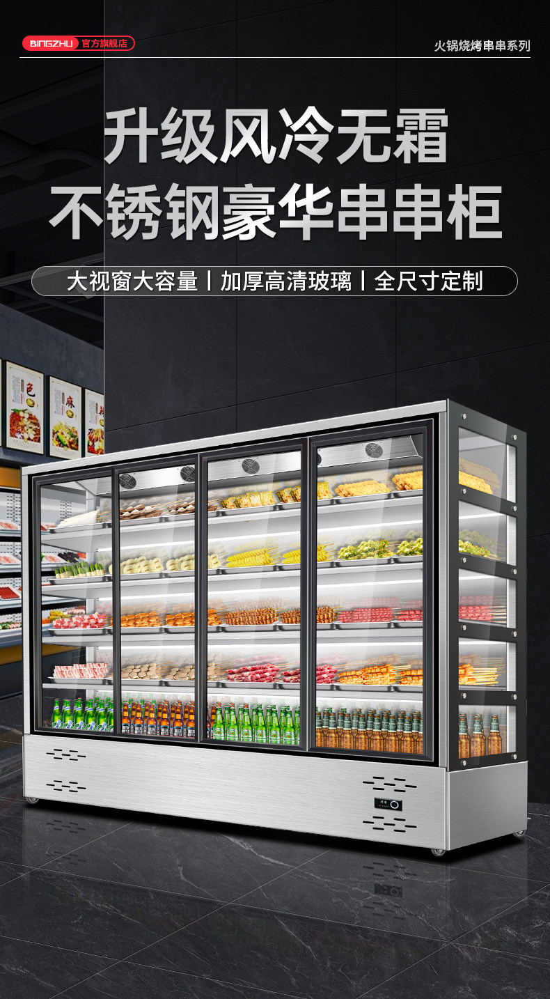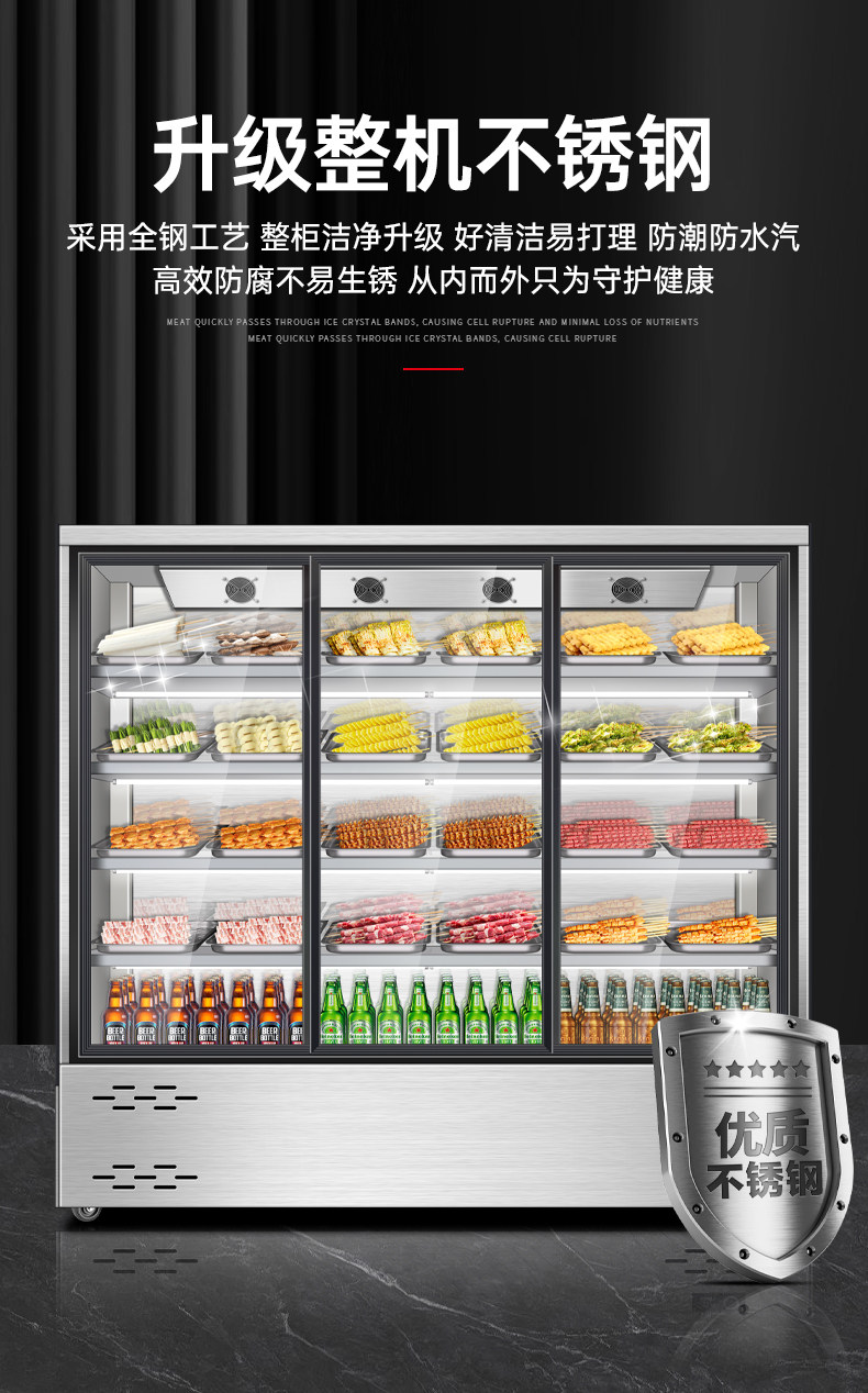 Ice-Cold Skewer Display Cabinet for Commercial Use, Open-Air Hot Pot Restaurant, Spicy Hot Pot Cabinet, Barbecue Restaurant, Stainless Steel Ordering Cabinet