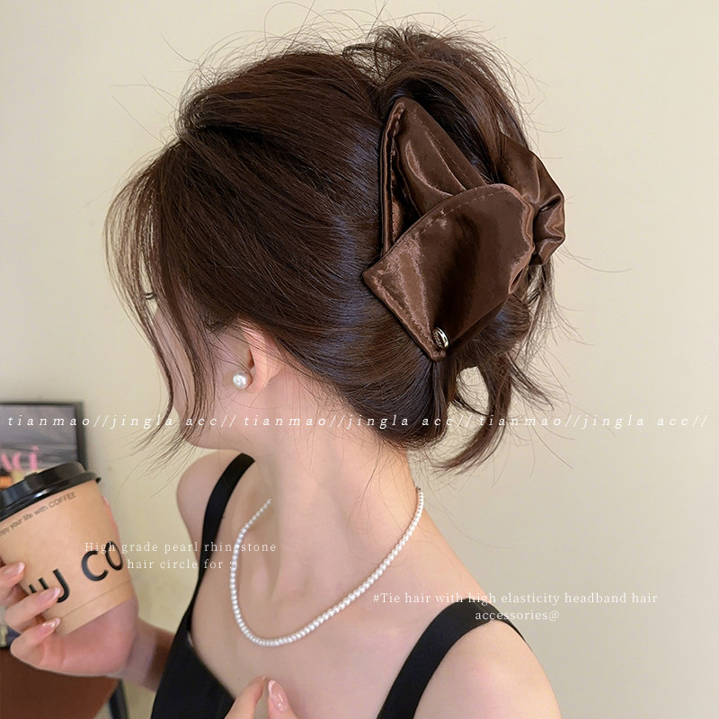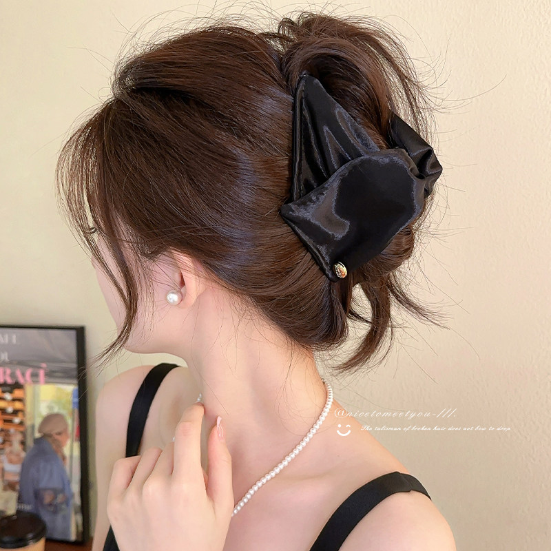 Satin Shell Triangle Hair Clip for Women, High-End 2025 New Style High Ponytail Hair Clip, Back of the Head Shark Clip Hair Accessory