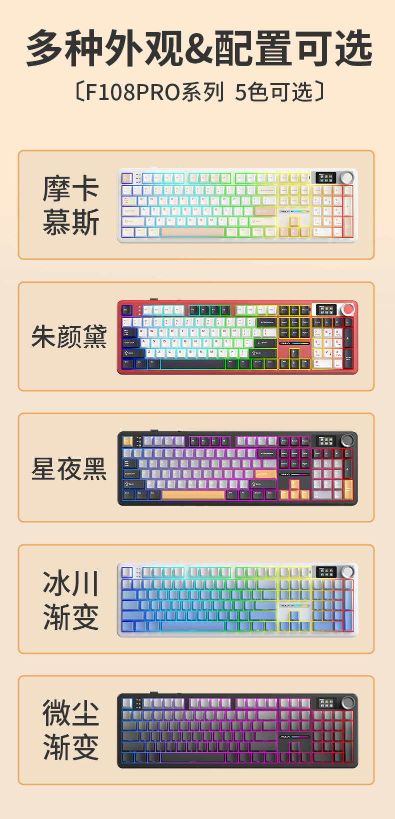 | Color Classification | F108Pro Micro Dust Gray - Caramel Latte Switch + Sc580 Black,F108Pro Zhu Yandai-Wind Spirit Axis+Sc580 White,F108Pro Glacier Blue-Wind Spirit Axis+Sc580 White,F108Pro Starry Night Black - "Listening to Rain" Switch + Sc580 Black,F108Pro Mocha Mousse-Caramel Latte Axis+Sc580 White,F108Pro Glacier Blue-Wind Spirit Axis,F108Pro Micro Dust Caramel Latte Switch,F108Pro Zhu Yandai-Wind Spirit Axis,F108Pro Mocha Mousse-Caramel Latte Axis,F108Pro Starry Night Black - Raindrop Switch,F108 Starry Night Black - Caramel Latte Switch + Sc580 Black,F108 Starry Sea Blue - Caramel Latte Switch + Sc580 White,F108 Glacier Blue-Wind Spirit Axis+Sc580 White,F108 Micro Dust Gray-Wind Spirit Axis+Sc580 Black |